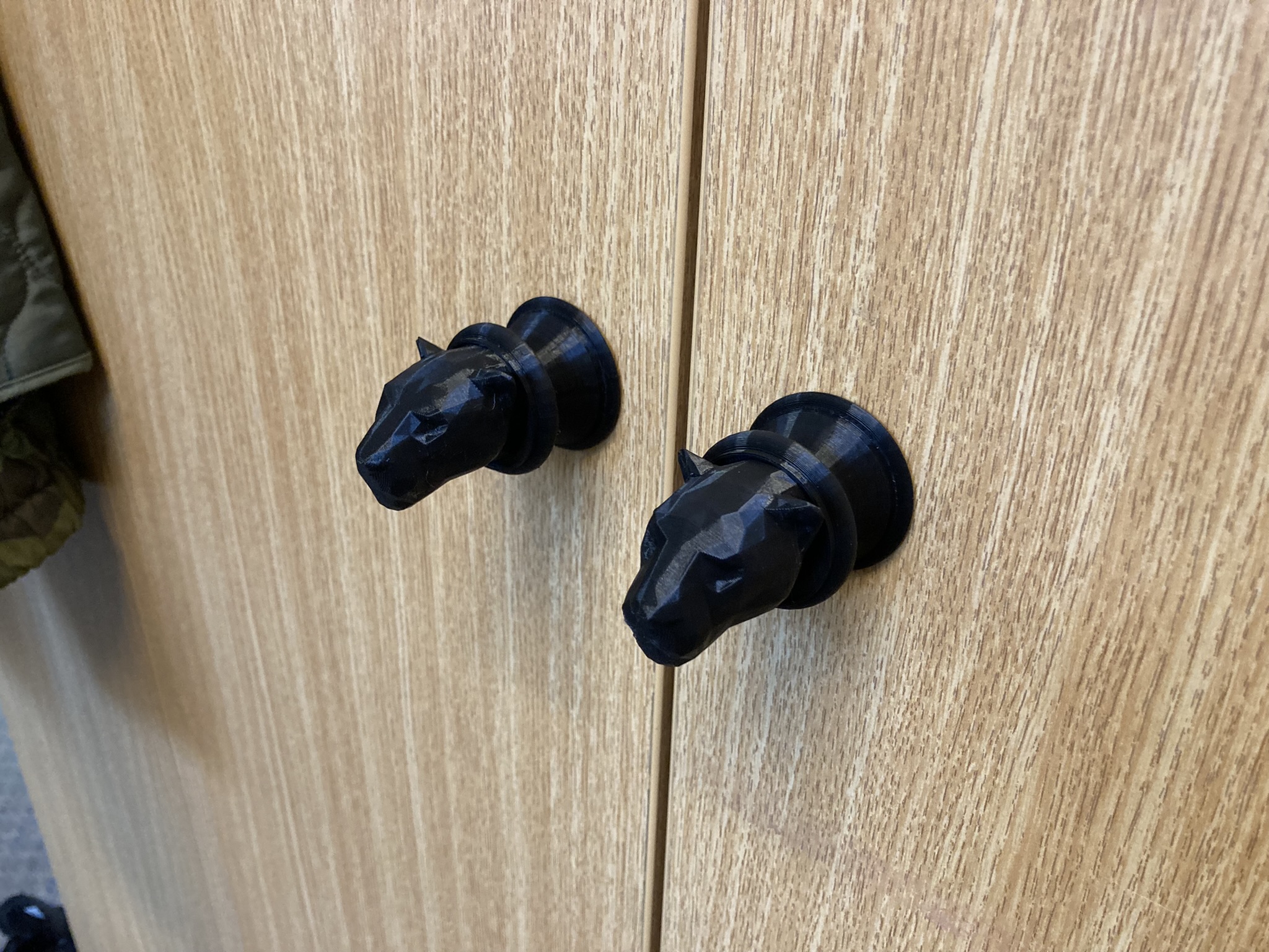 Tay nắm cửa Báo được chỉnh sửa từ mô hình của Adam1979 theo phong cách low poly, cao 5 cm. Mô hình đã sẵn sàng để in, chờ người dùng thử nghiệm và chia sẻ ảnh chụp thực tế.