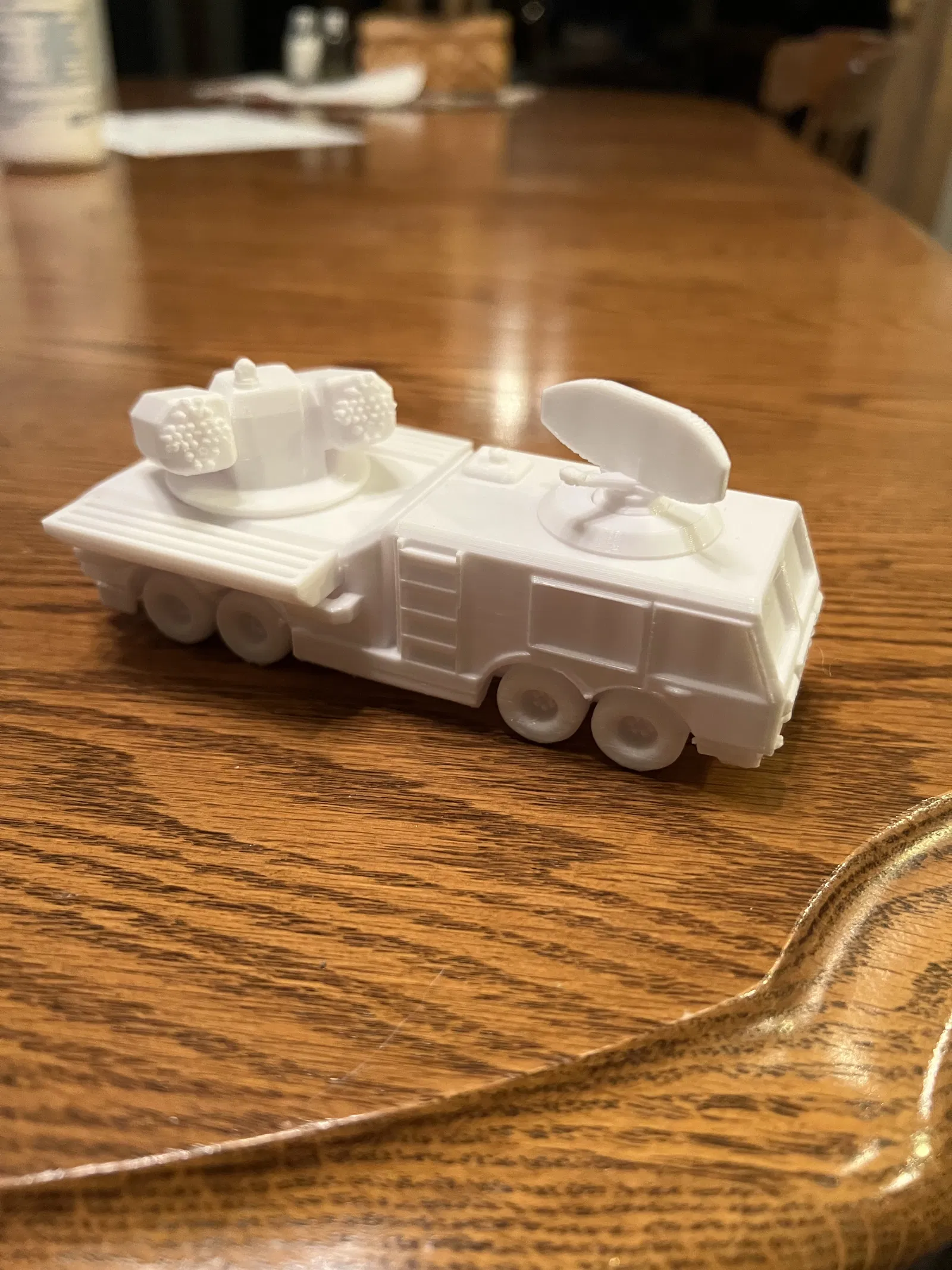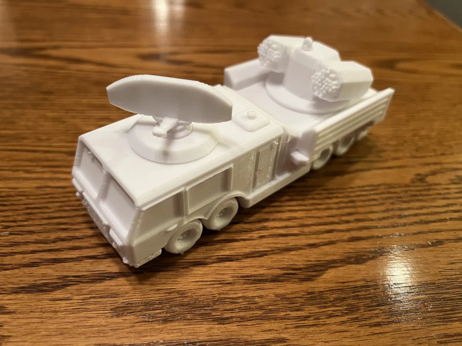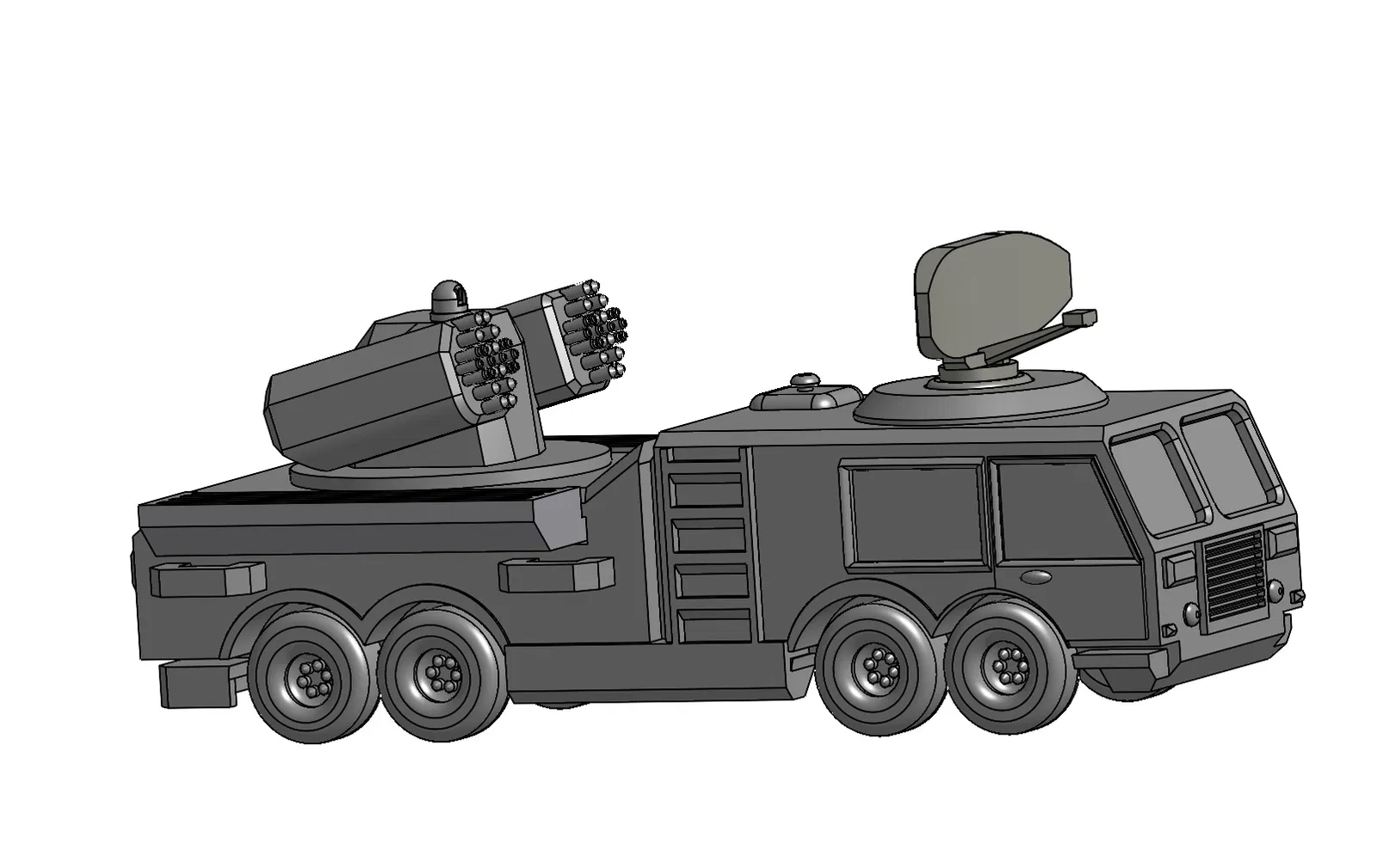 Một xe phòng không tự hành trang bị tên lửa, có tháp pháo xoay và ăng-ten radar. Thích hợp cho anh em đam mê xe quân sự, xe tăng và tên lửa.