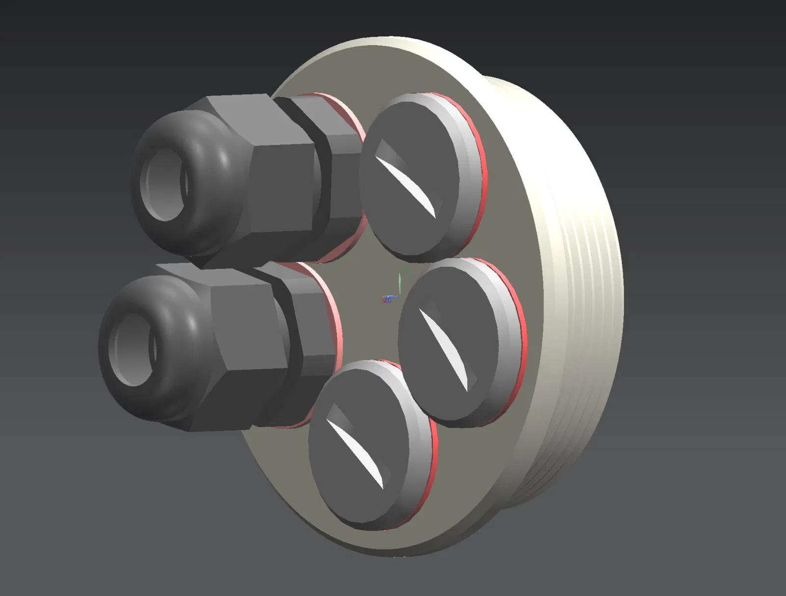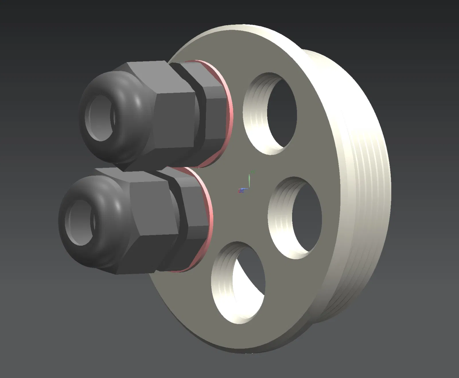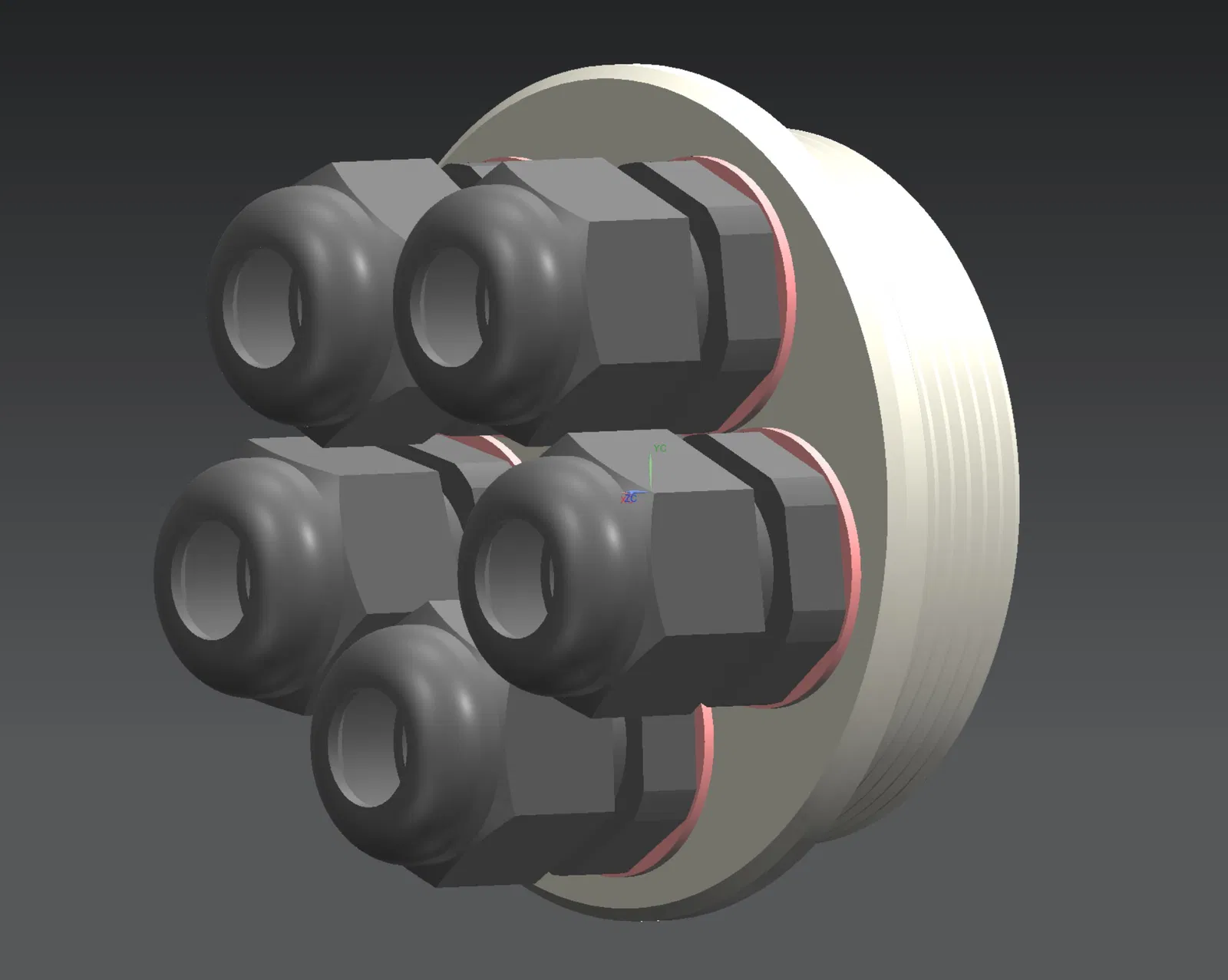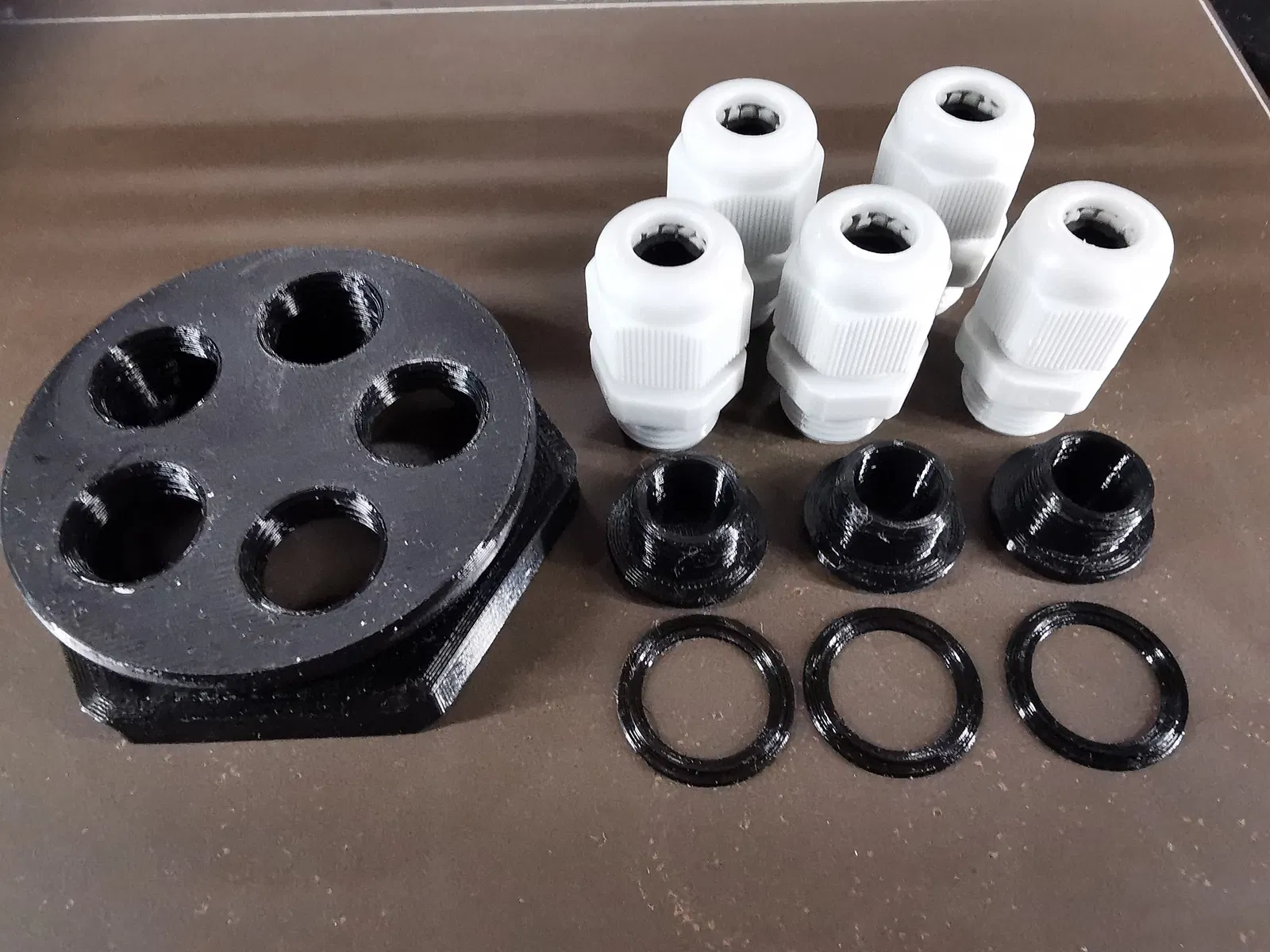 Vật liệu 1x Bộ chuyển đổi PG42 (ren PG42) [PG42_BlindStuffing_PGthread_to_5xPG9_PGthread_v00.stl] 1x Đai ốc nút chặn PG42 (ren PG42) [PG42_Nut_PGthread_v00.stl hoặc [PG42_Nut_PGthread_v10.stl] (1-5)x Đầu nối cáp PG9 (ren PG9) [xem liên kết] (4-0)x Nút chặn PG9 [PG9_BlindStuffing_PGthread_v01_slim.stl] (4-0)x Vòng đệm TPU PG9 (tùy chọn) [PG9_TPU-Sealing_v00_slim.stl]