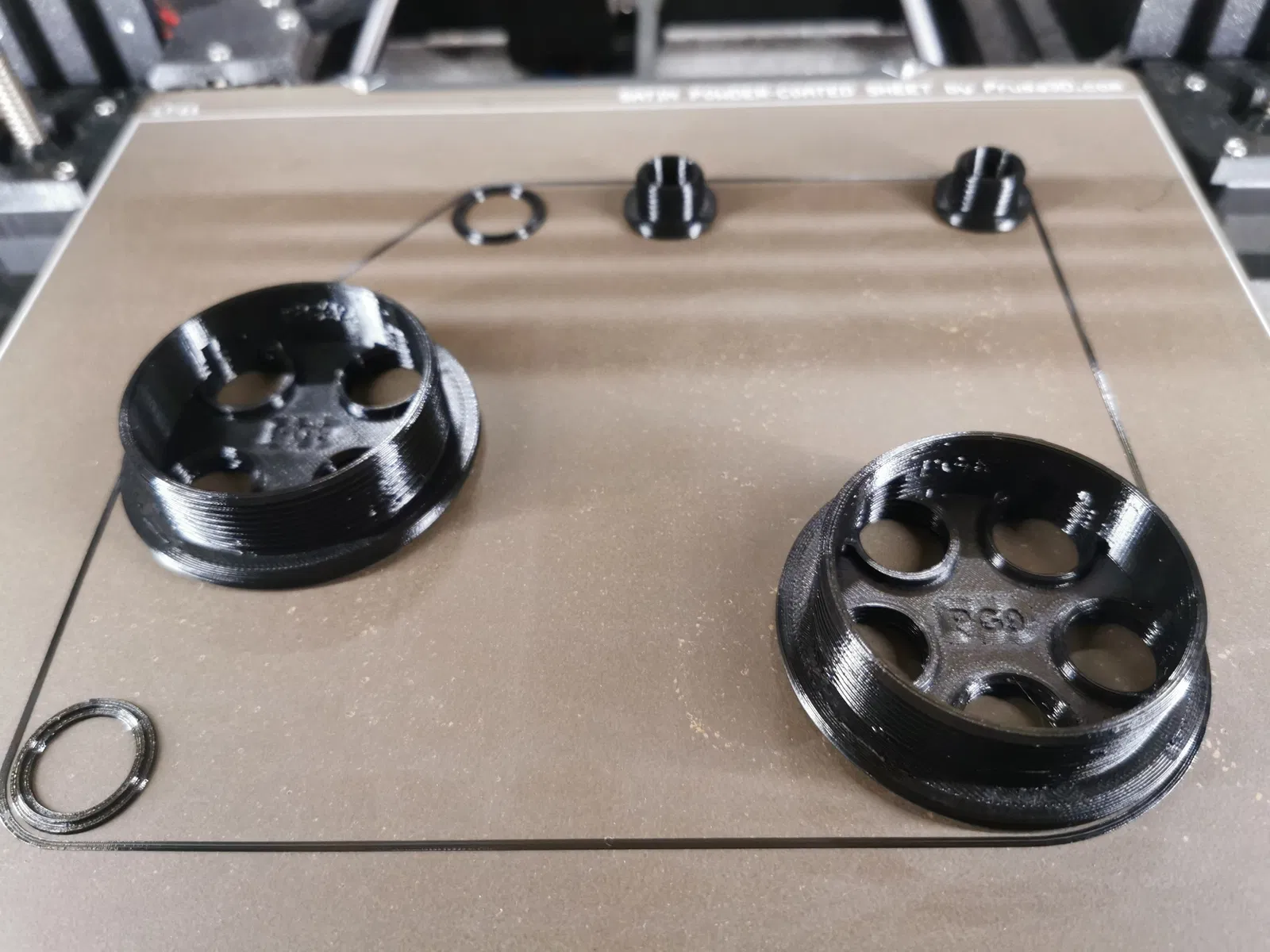 In Chất liệu: PETG (nút chặn, đai ốc), TPU 95A (vòng đệm) Giá đỡ: không cần Brim: không cần In nối tiếp (từng bộ phận) để ren đẹp hơn.