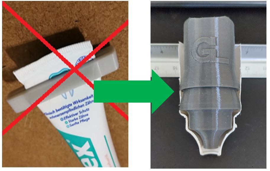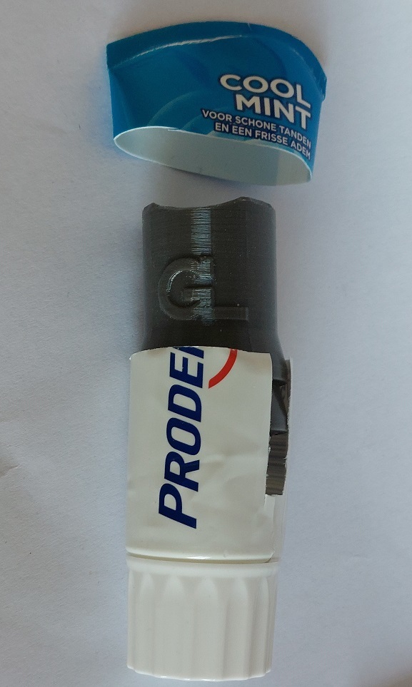 Nhìn mấy cách vét kem đánh răng mà thấy phí quá, tui chế cái này cho sạch sẽ, không còn sót lại tí nào. Thiết kế cho tuýp kem kiểu Hà Lan/Bỉ, cần khác cứ báo tui nha. In bằng PETG, độ đặc 10%.