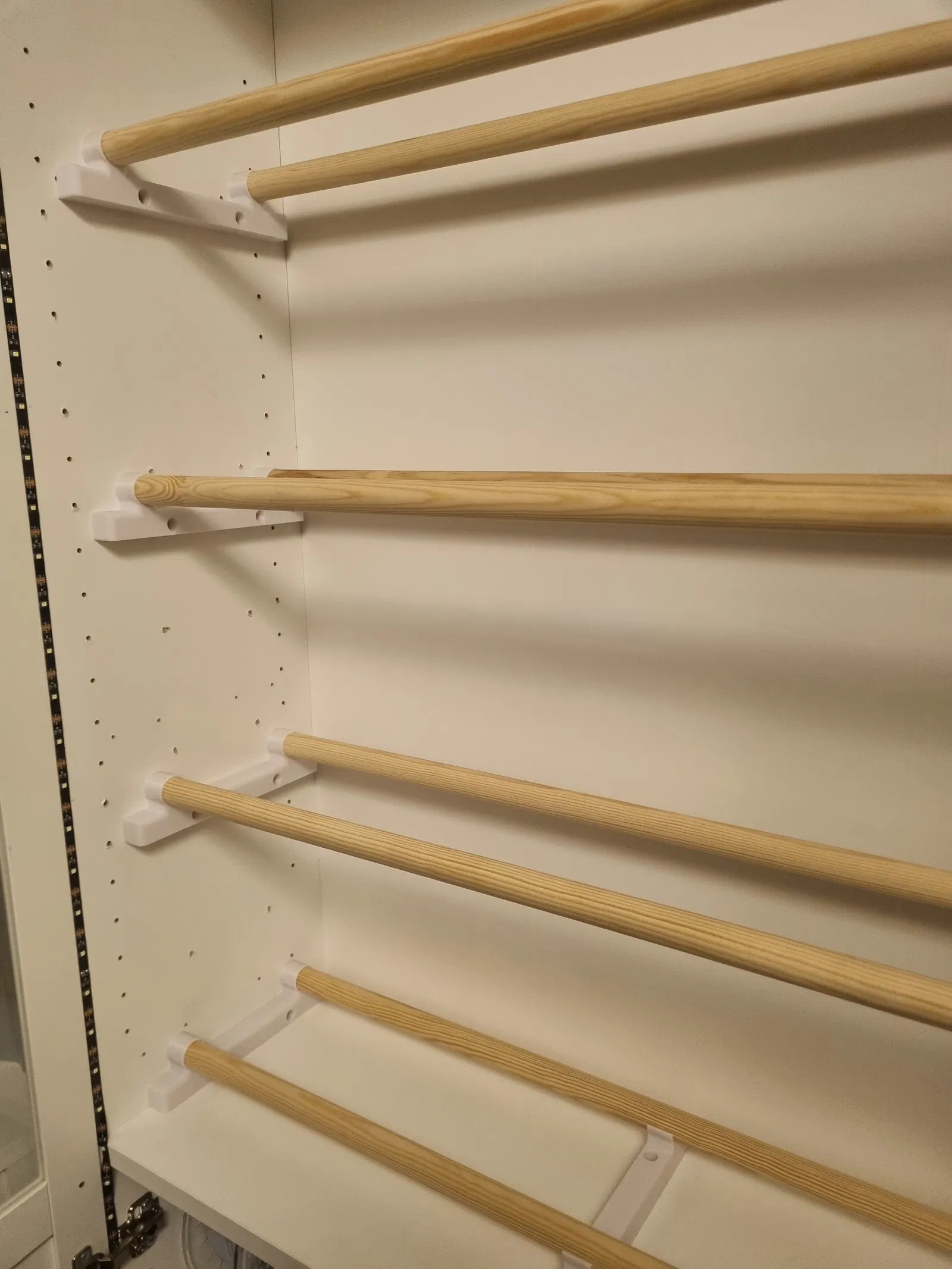 - Ngoài ra còn có một miếng nối ở giữa nếu bạn dùng thanh dài và cần thêm điểm đỡ ở giữa hoặc đại loại vậy, mình đã dùng một cái ở đáy tủ của mình, cái này chỉ cho đẹp thôi, vì thanh chỉ dài 75cm và không cần thêm điểm đỡ trong trường hợp này :)