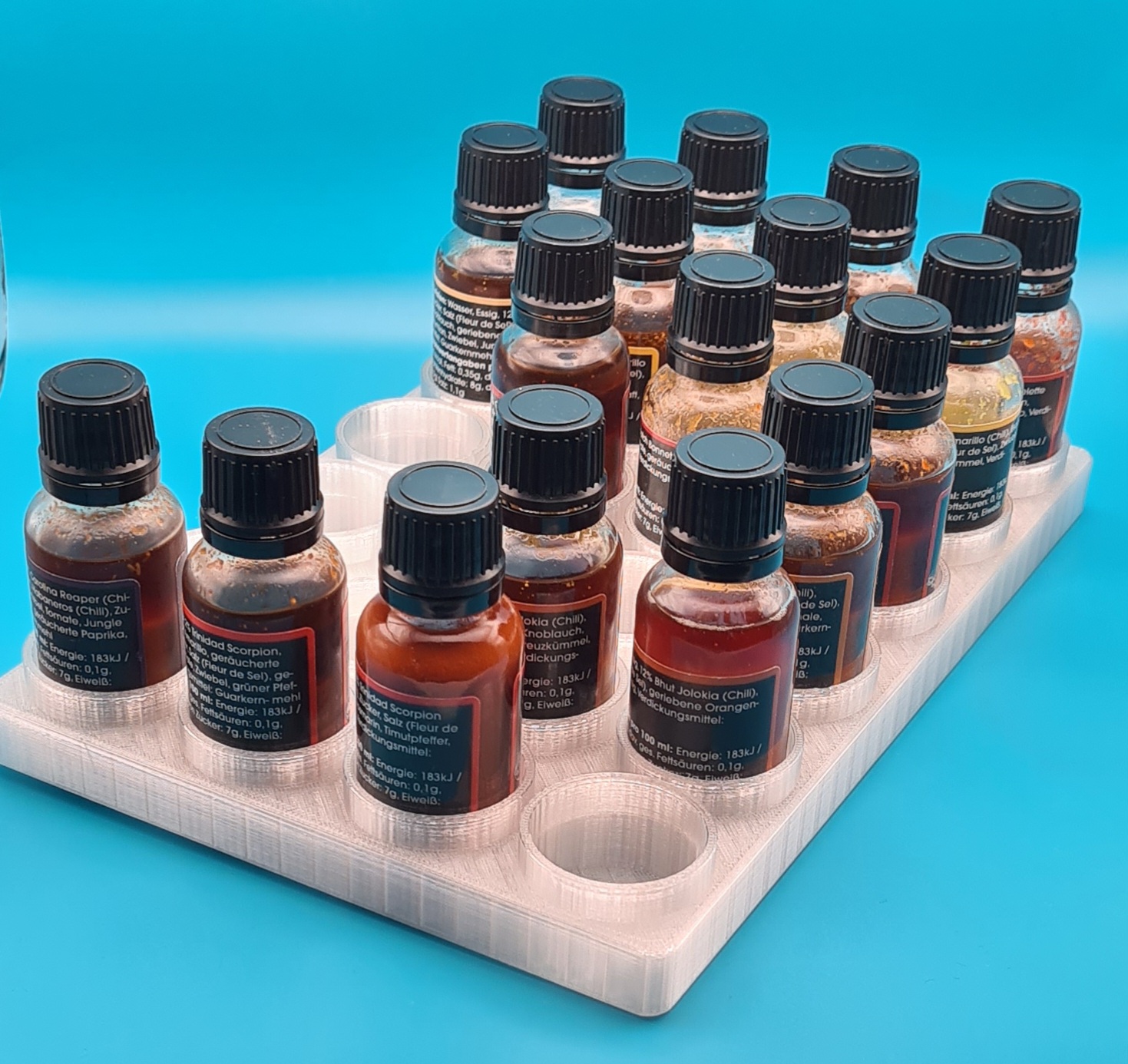 Giá đỡ đơn giản cho 24 chai sốt ớt hoặc các chai 30mm khác.