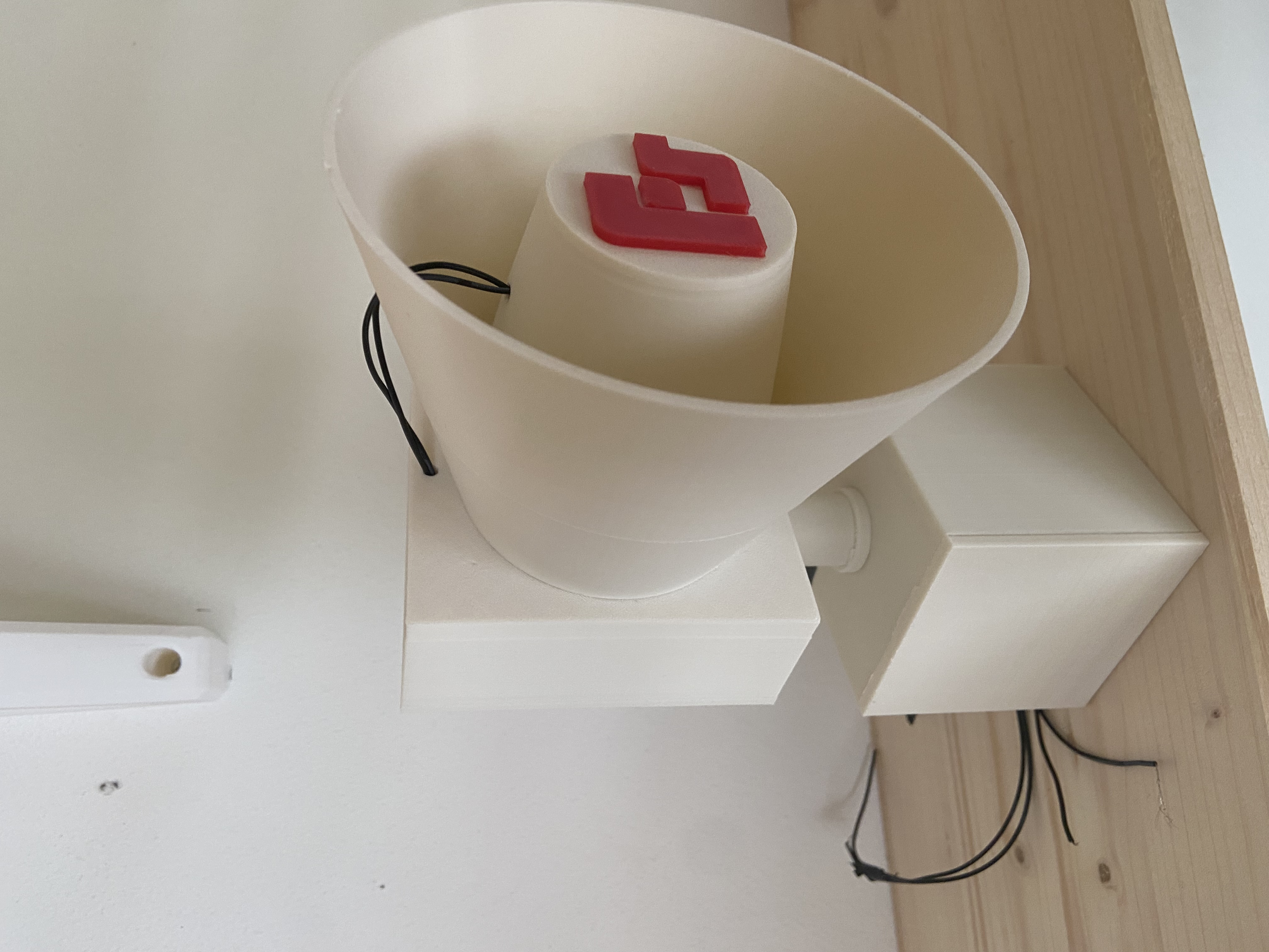 Đầu tiên, gắn động cơ vào stator. Sau đó, gắn chopper vào trục động cơ. Đảm bảo rằng chopper không cọ xát vào cạnh của stator. Điều này ảnh hưởng rất lớn đến âm thanh. Nếu stator cọ xát vào cạnh liên tục, tốt nhất là in một chiếc chopper mới. Bây giờ, gắn dây cáp vào động cơ. Sau khi hoàn thành, bạn có thể dán nắp động cơ vào stator. Nếu bạn đã in logo Federal Signal, bạn có thể dán nó lên bây giờ. Bây giờ đến phần đế loa. Dán loa vào đó và sau đó lắp toàn bộ bộ phận stator-chopper vào loa. Bây giờ, dán hai vòi hút vào dưới đế loa. Bạn có thể xem cách thực hiện trong hình ảnh. Đừng gắn nắp vào đế loa vội; cái đó để sau cùng!