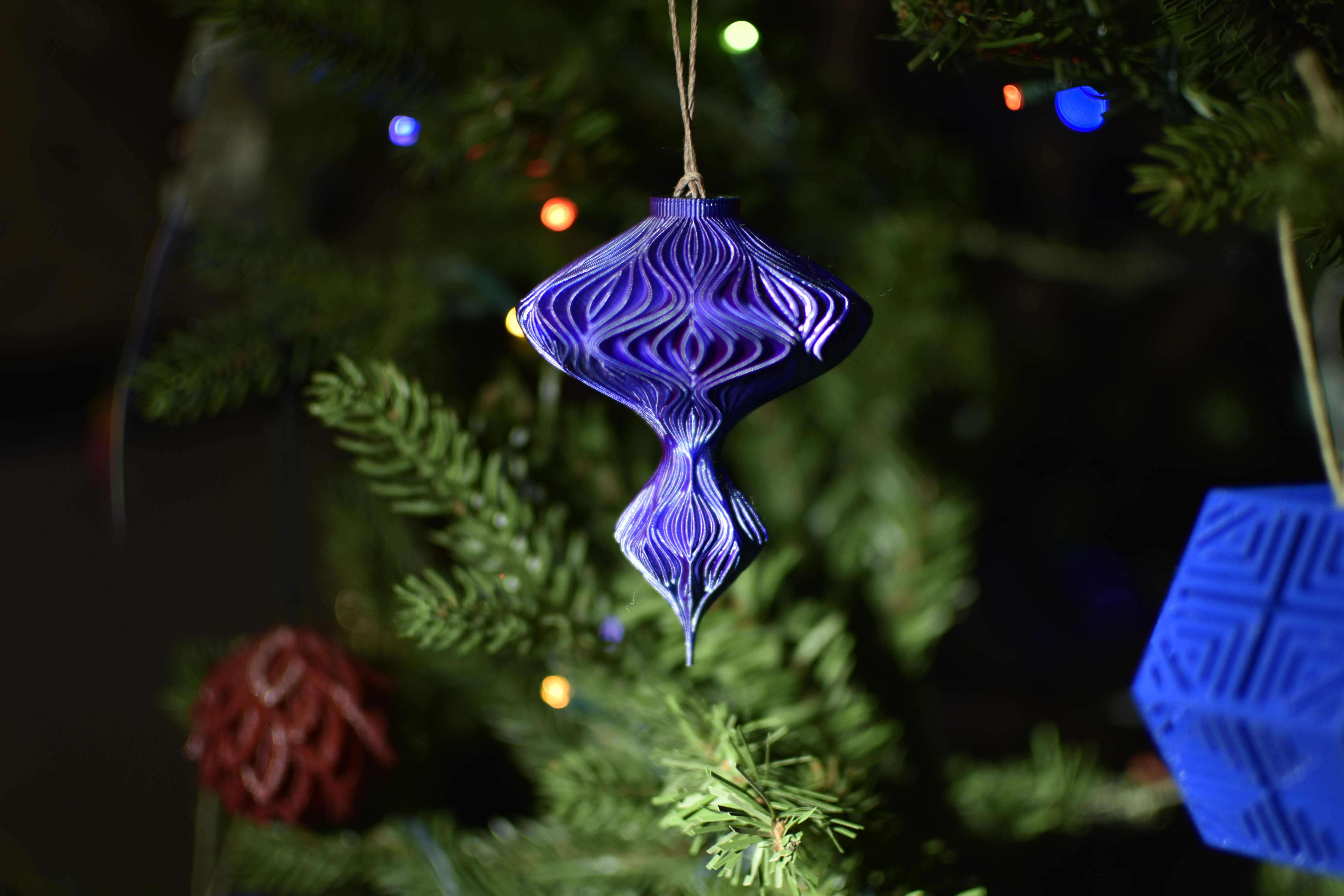 Thiết kế mới nhất của tui cho mùa Giáng Sinh. Có hình giọt nước đôi dạng "sinusoidal" với các gợn sóng hành kiểu củ hành. In ra hết 1 lần, úp ngược trên khay in. In nhiều cái để tránh cái đầu nhọn bị chảy nha.