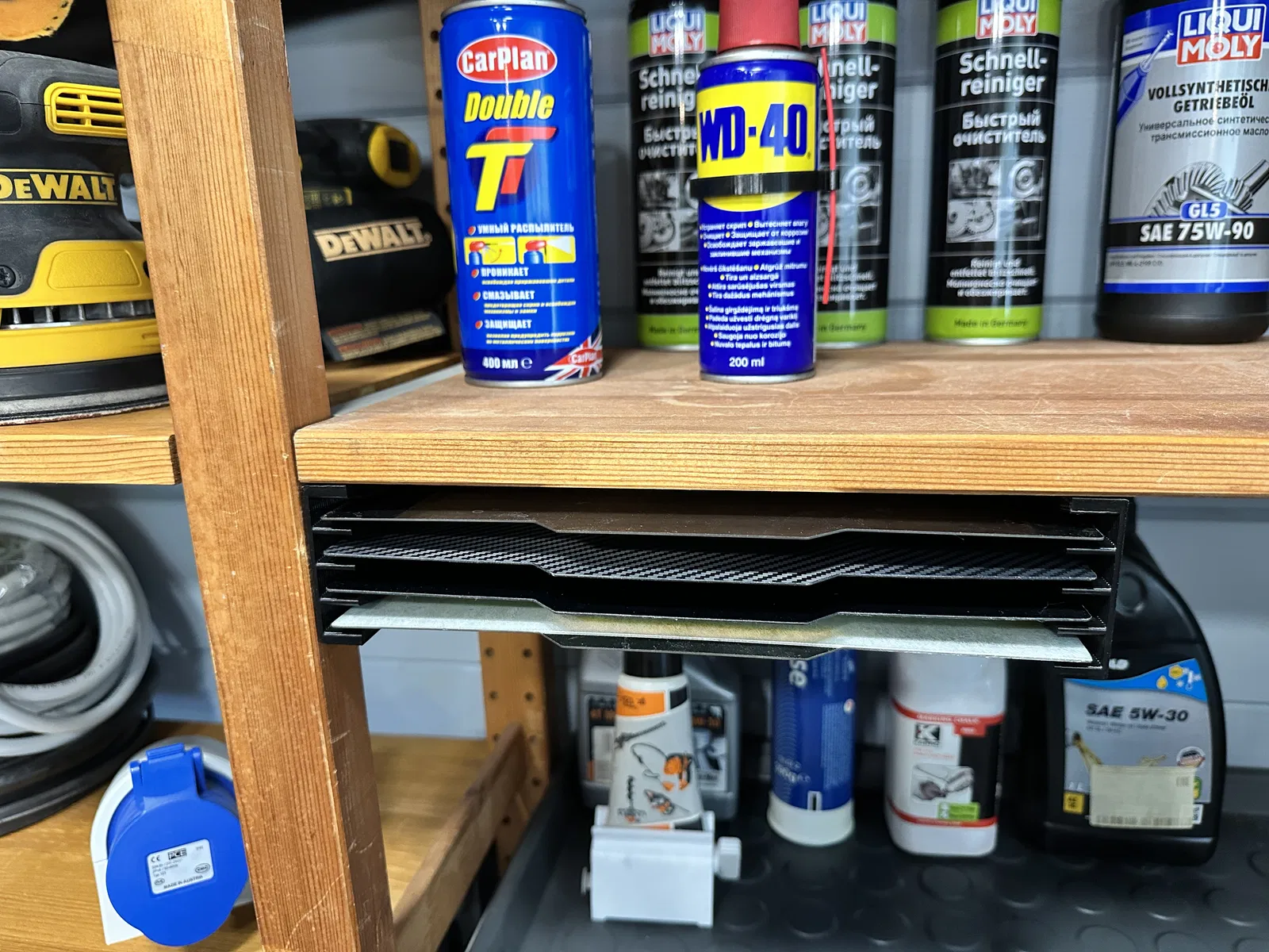 Đây là đế giữ 4 tấm PEI gắn dưới gầm kệ dành cho máy Qidi Q1 Pro của mình.
