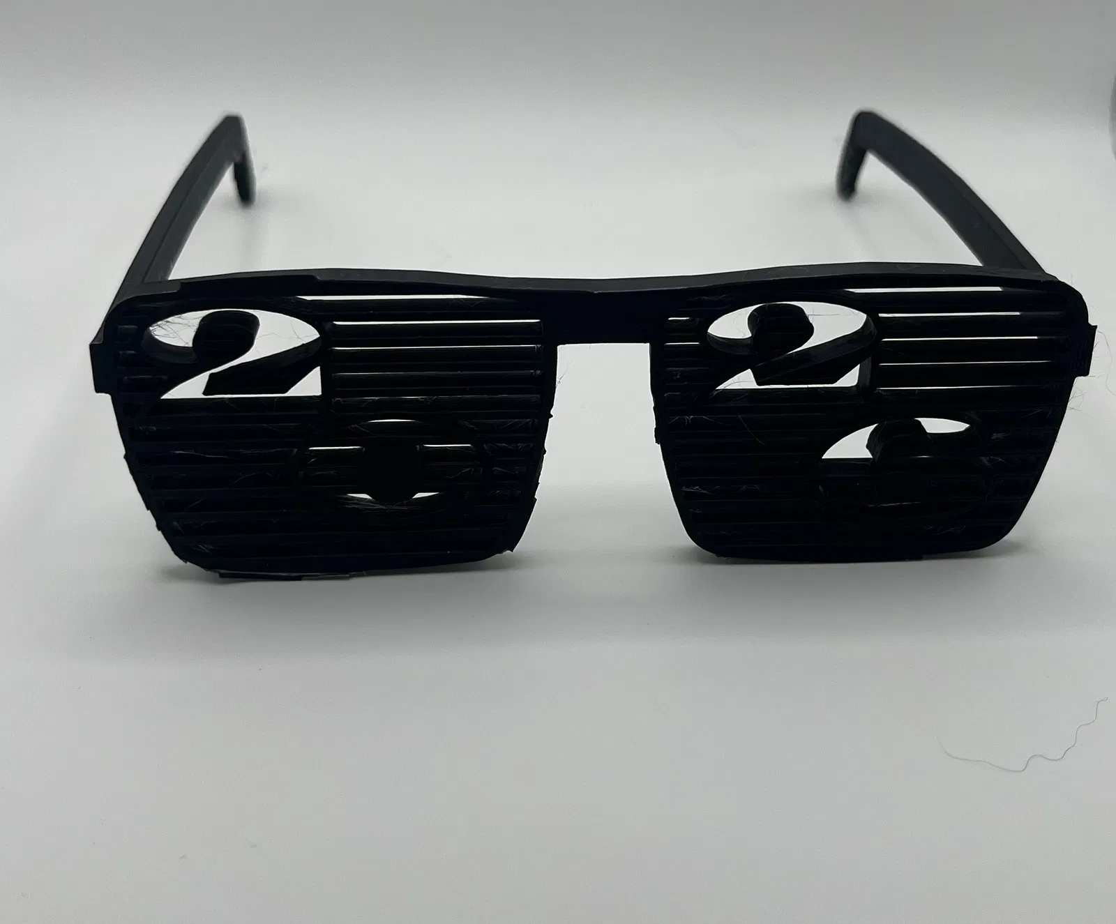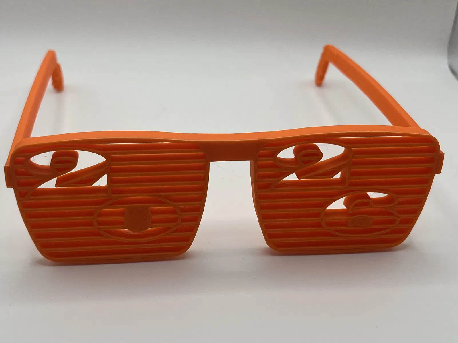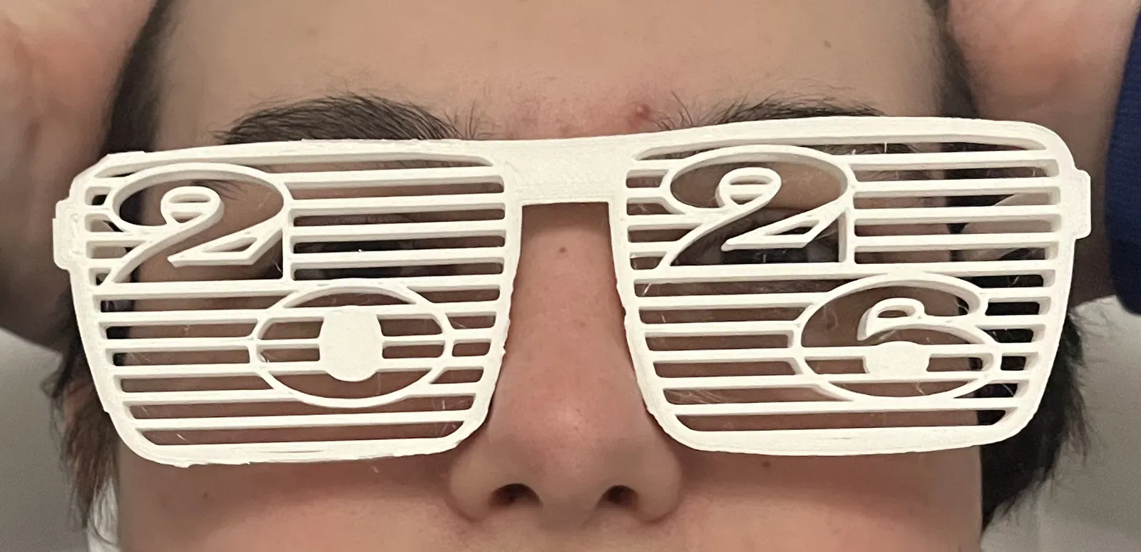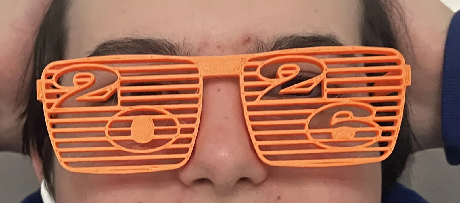 Chào đón năm 2026 với cặp kính tiệc tùng "kiểu màn trập" in 3D độc đáo! Số 2026 được tích hợp sẵn trên mắt kính, hoàn hảo cho ảnh đêm Giao thừa, tiệc tùng. Kính nhẹ, đeo thoải mái và làm bằng PLA. Không cần supports, in tốt với layer height 0.2mm và 3+ walls. Đây là kính vui nhộn, không bảo vệ mắt.