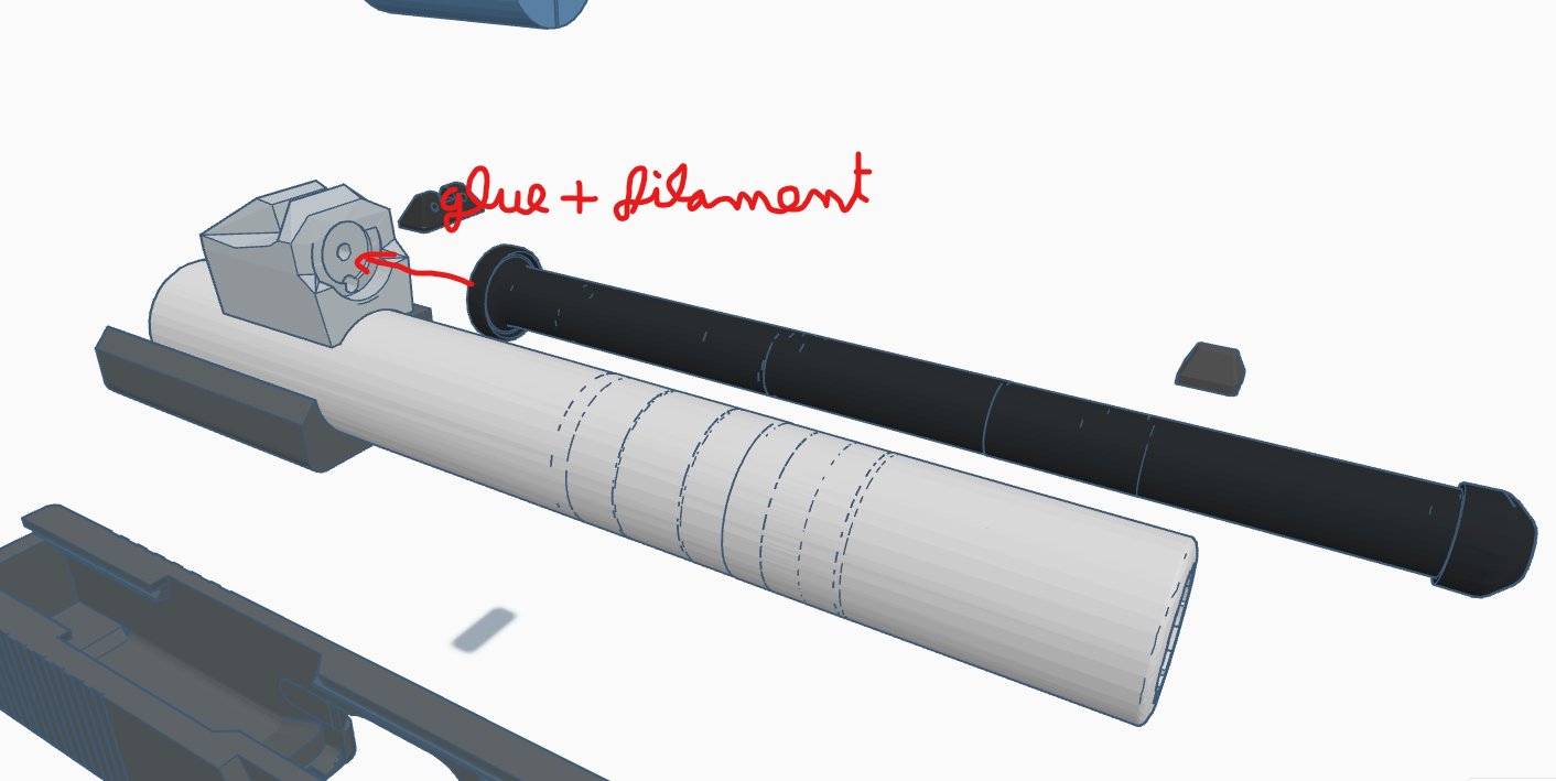 Trong hình ảnh có một hướng dẫn đầy đủ về cách lắp ráp. Cứ tự nhiên đặt câu hỏi nha. Bạn có thể cần chà nhám một chút để mọi thứ khớp và trượt được. Tôi dùng sợi filament 1.75mm thông thường cho các chốt.