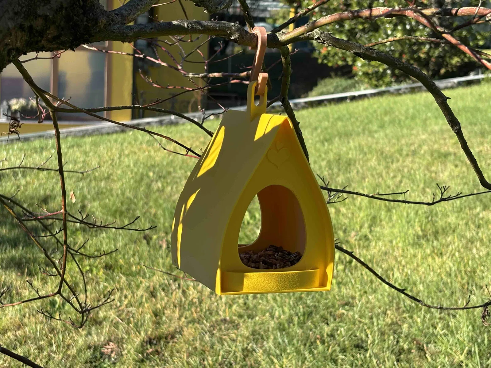 Máng ăn mới cho mấy đứa chim cưng của tui. In bằng nhựa PETG màu vàng đẹp, không cần support. In ra vẫn ngon lành. Thông số in: 2 Tường, 15% độ đặc.