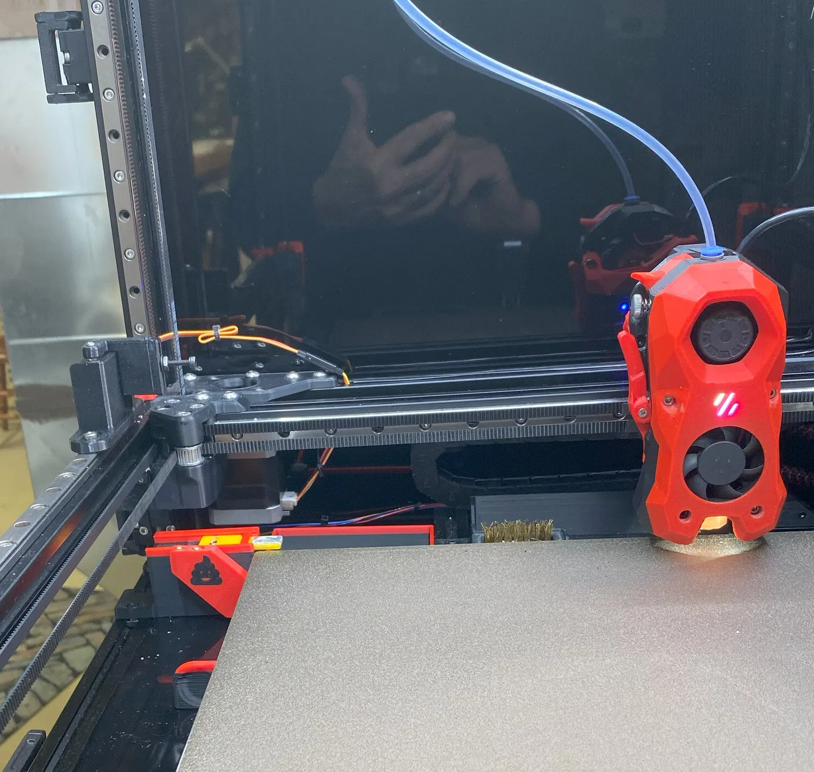 Vị trí đề xuất cho giá đỡ servo là ở góc sau cùng bên trái của khu vực in ngay phía trên servo Blobifier. Điều này giảm thiểu diện tích in bị ảnh hưởng bởi Filametrix.