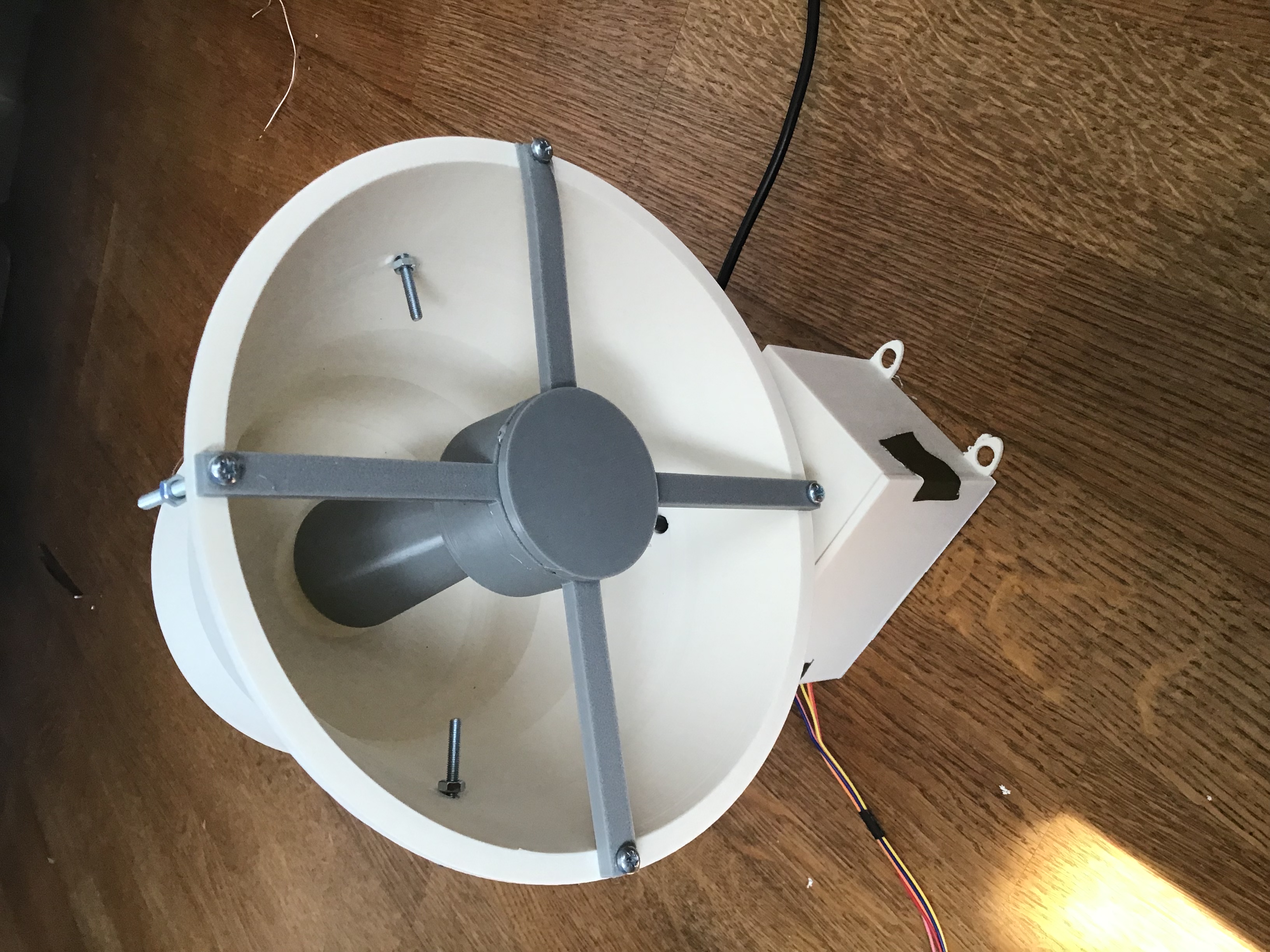 Đầu tiên, gắn giá đỡ còi vào còi bằng ốc. Sau đó siết chặt từng con ốc bằng đai ốc. Nếu không biết cách làm, hãy xem hình ảnh. Bây giờ bạn có thể lấy giá đỡ loa và dán loa vào đó. Đừng quên hàn dây và kiểm tra trước khi dán nắp. Sau đó, luồn dây qua còi đến giá đỡ còi và cũng luồn qua lỗ ở đó. Sau đó bạn có thể bắt giá đỡ loa vào và siết chặt bằng đai ốc. Bây giờ đến trục. Quan trọng! Luồn dây qua trục rồi dán nó vào. Bây giờ luồn dây qua hộp bộ phận xoay của động cơ rồi qua bánh răng xoay. Bây giờ dán trục vào bánh răng xoay rồi mới đến động cơ. Bây giờ là một bước rất quan trọng! Tôi đã mắc sai lầm khi không cắt hộp bộ phận xoay.