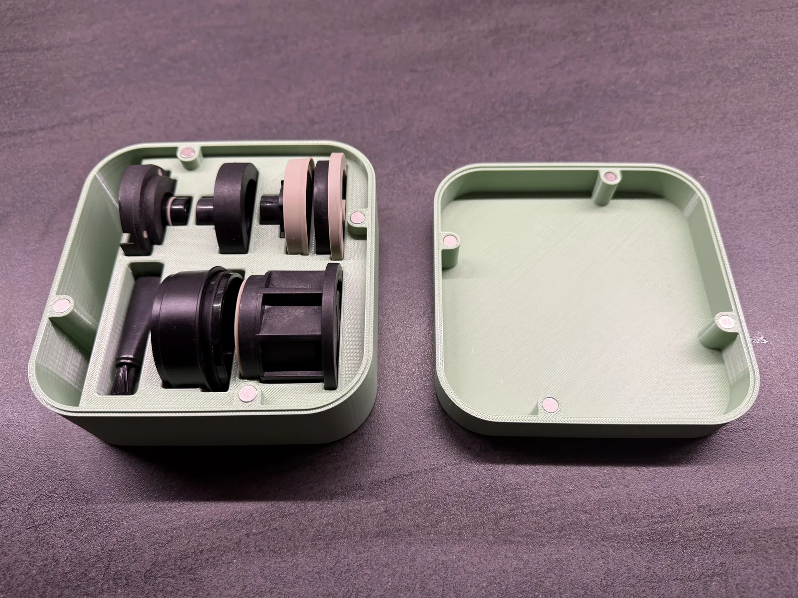 Chiếc hộp này là giải pháp hoàn hảo để cất giữ mọi phụ kiện cho máy pha cà phê Wacaco Pixapresso của bạn. Nó có đủ không gian cho cả phụ kiện pha từ cà phê xay và từ viên nén espresso, thậm chí còn có thể dùng để hong khô chúng. Nắp hộp được cố định chắc chắn bằng nam châm Neodymium.