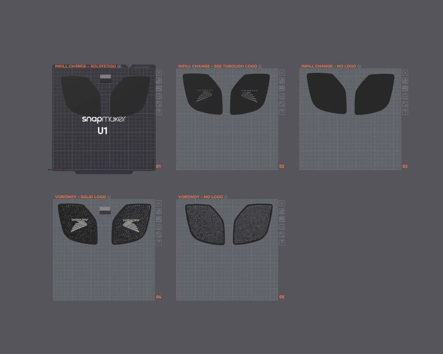 Về lưới tùy chỉnh - thay đổi loại lòng trong, mật độ và hướng trong cài đặt của slicer để đạt được vẻ ngoài độc đáo cho bộ setup của bạn.