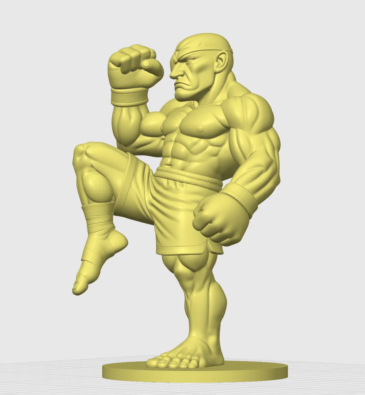 Mô hình 3D Sagat, một nhân vật nổi tiếng từ loạt game Street Fighter. Thích hợp cho người hâm mộ và các nhà sưu tập mô hình.