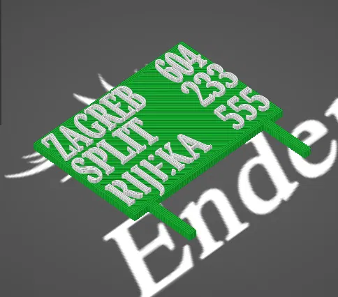Biển chỉ đường về Dubrovnik, phiên bản không có thật, với các thành phố Zagreb, Split và Rijeka được thể hiện. Mô hình này được thiết kế cho tỷ lệ TT.