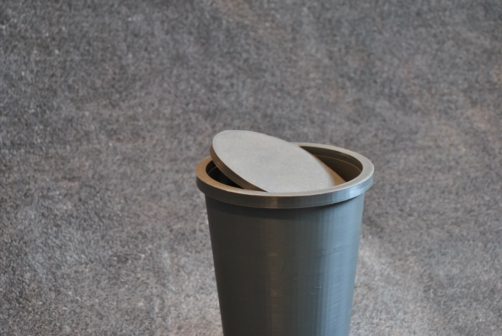 Giữ cho không gian làm việc của bạn gọn gàng và phong cách với chiếc thùng rác mini nhỏ gọn này, có nắp xoay tự cân bằng mượt mà. Được thiết kế từ đầu và in 3D hoàn chỉnh, chiếc thùng nhỏ này mang lại cá tính và chức năng cho bất kỳ bàn làm việc, xưởng, khu vực thủ công hoặc bộ gaming nào.