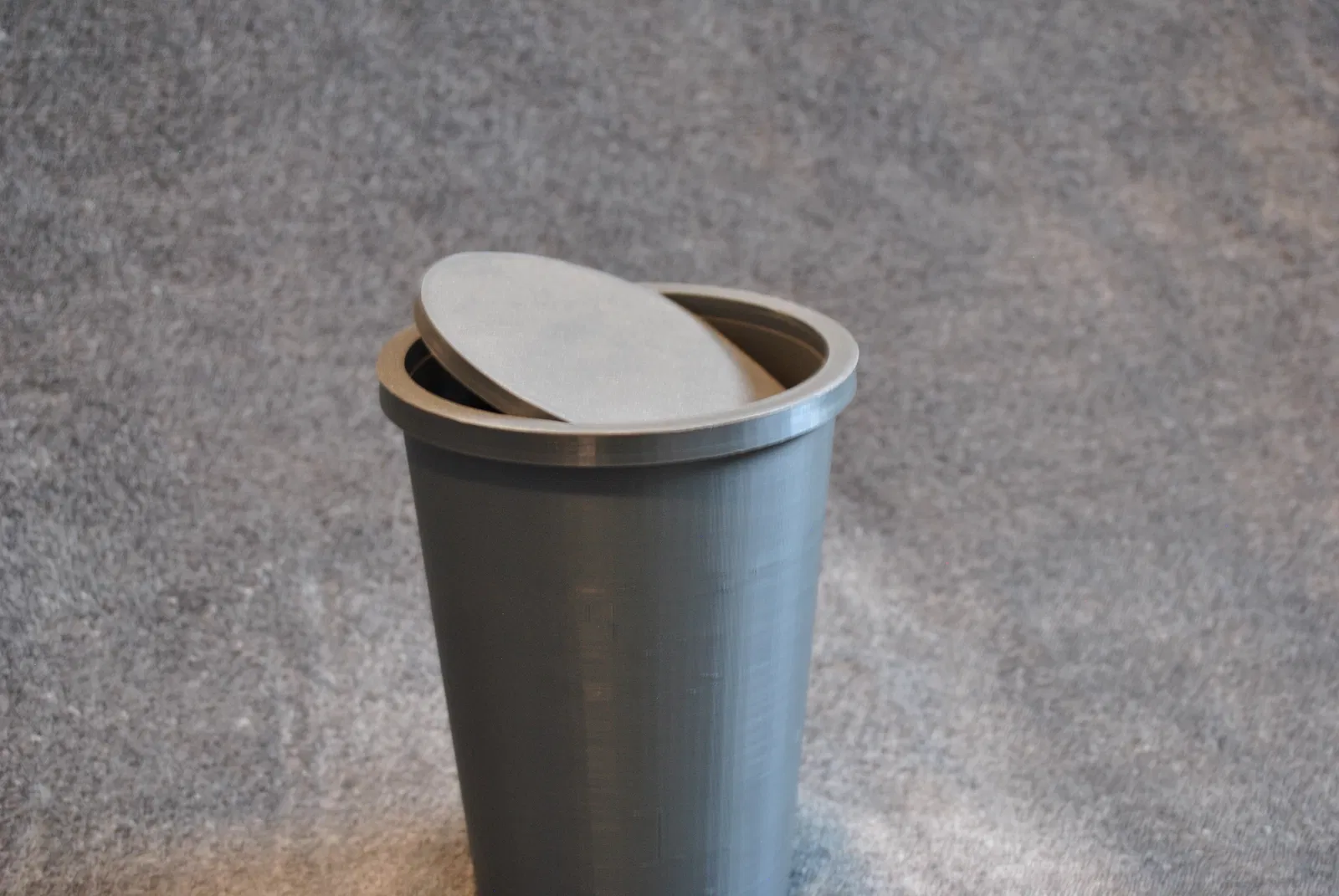 Diện tích chiếm dụng cố tình được làm nhỏ để vừa vặn ở mọi nơi, nhưng vẫn chứa được nhiều đồ nhờ thể tích bên trong hình trụ cao. Thiết kế hai phần cho phép in không cần vật liệu hỗ trợ và lắp ráp dễ dàng bằng cách ghép nối. Nó chắc chắn, mượt mà và sẵn sàng cho việc sử dụng hàng ngày.