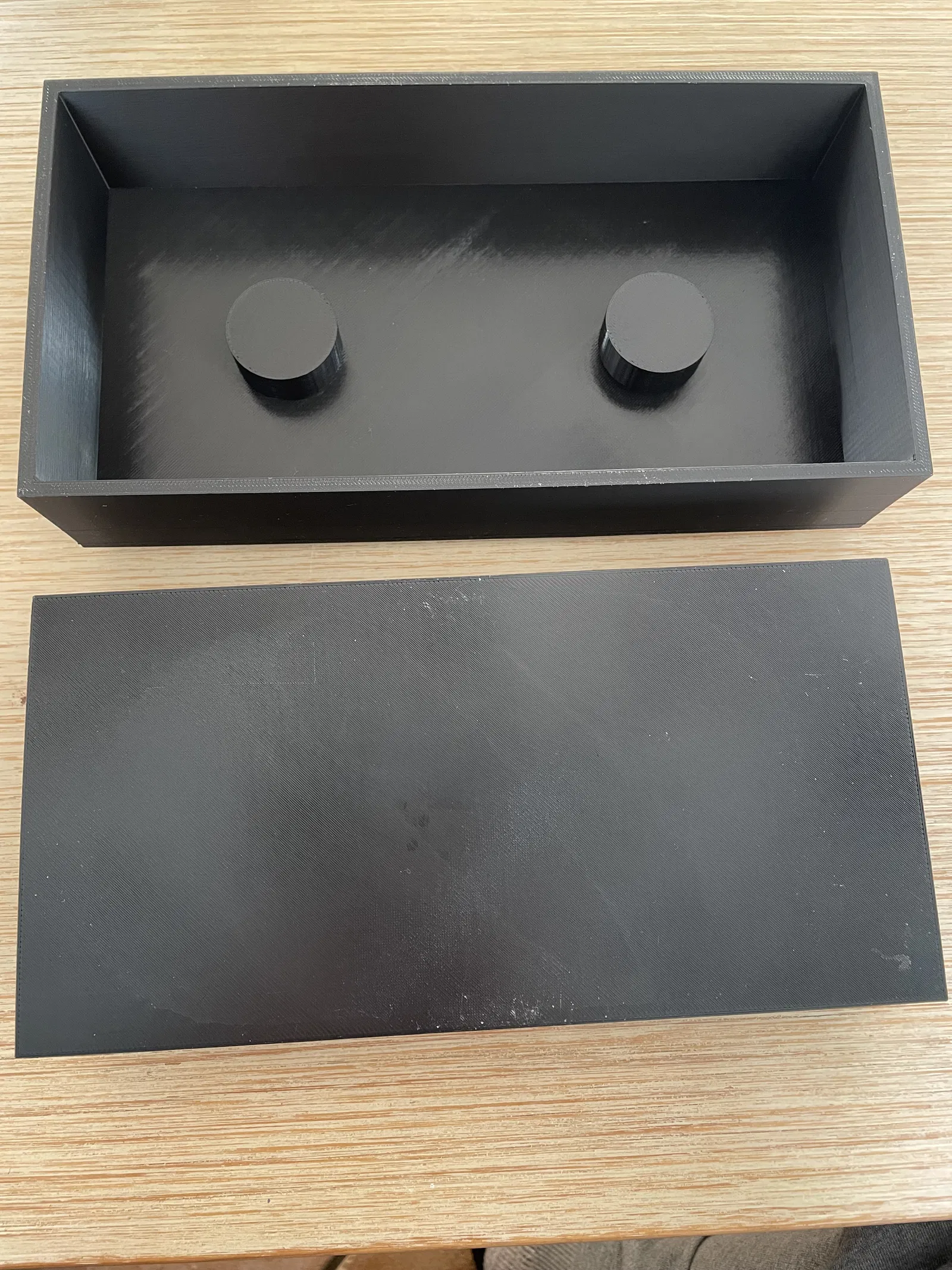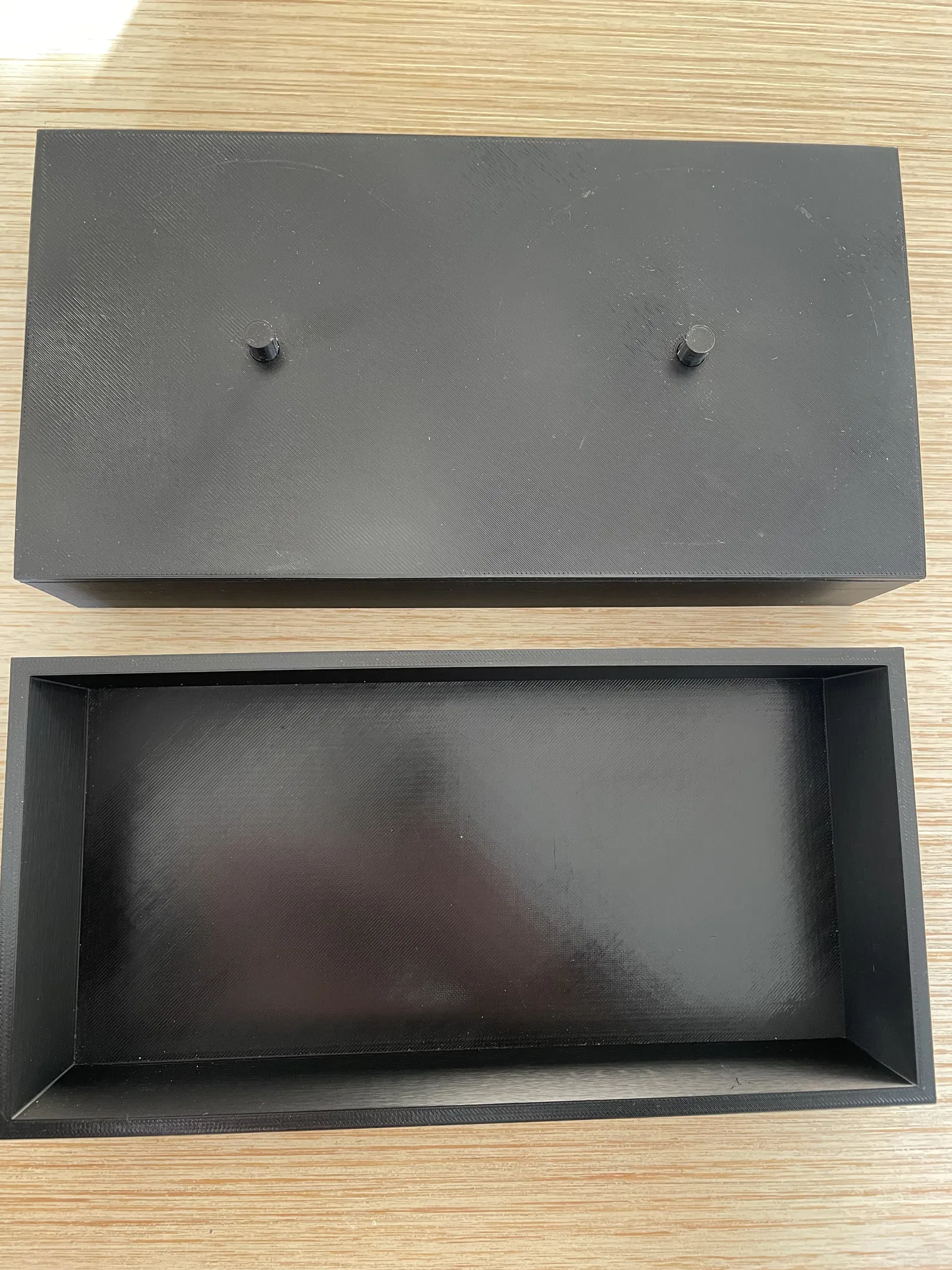 Cái hộp này được thiết kế để đựng đồ dùng cho việc đan len nha. Mấy cái trục thì mình sẽ dán keo vô nắp. Ngoài ra, bạn sẽ cần thêm 2 cái vòng bi tiêu chuẩn nữa. Đường kính ngoài 22mm cho trục 8mm. Mấy cái vòng bi này sẽ ấn vô cái lỗ của trục quay từ phía dưới đó.