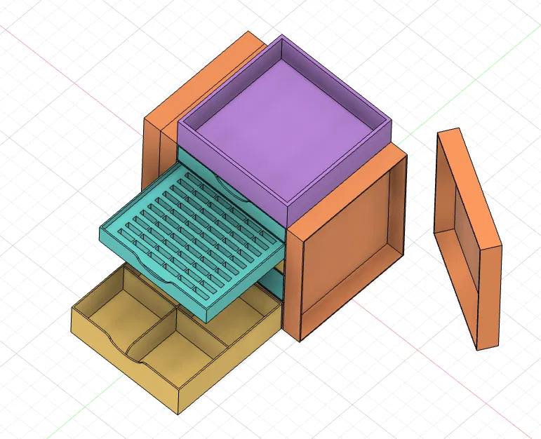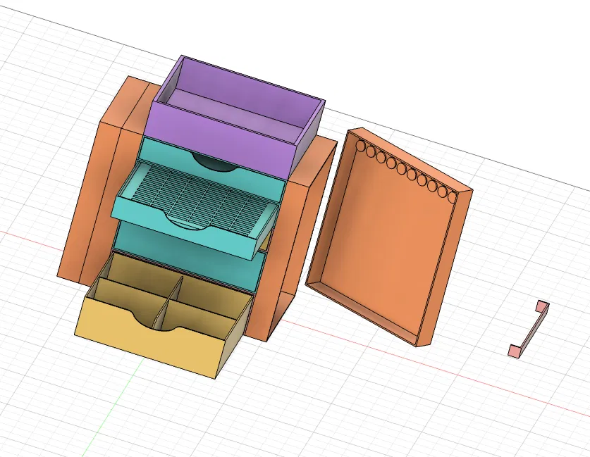 ORGANIZER GT481 là kệ tổ chức 5 tầng độc đáo với cửa đôi, lý tưởng để cất giữ vòng cổ, vòng tay, hoa tai và nhẫn. Được làm bởi www.webtessitore.it, với cài đặt in chi tiết cho máy Anycubic Kobra S1 Combo và laser Mecpow X3Pro 10W. Tải ngay file STL và khám phá các mẹo hay với Fusion360!