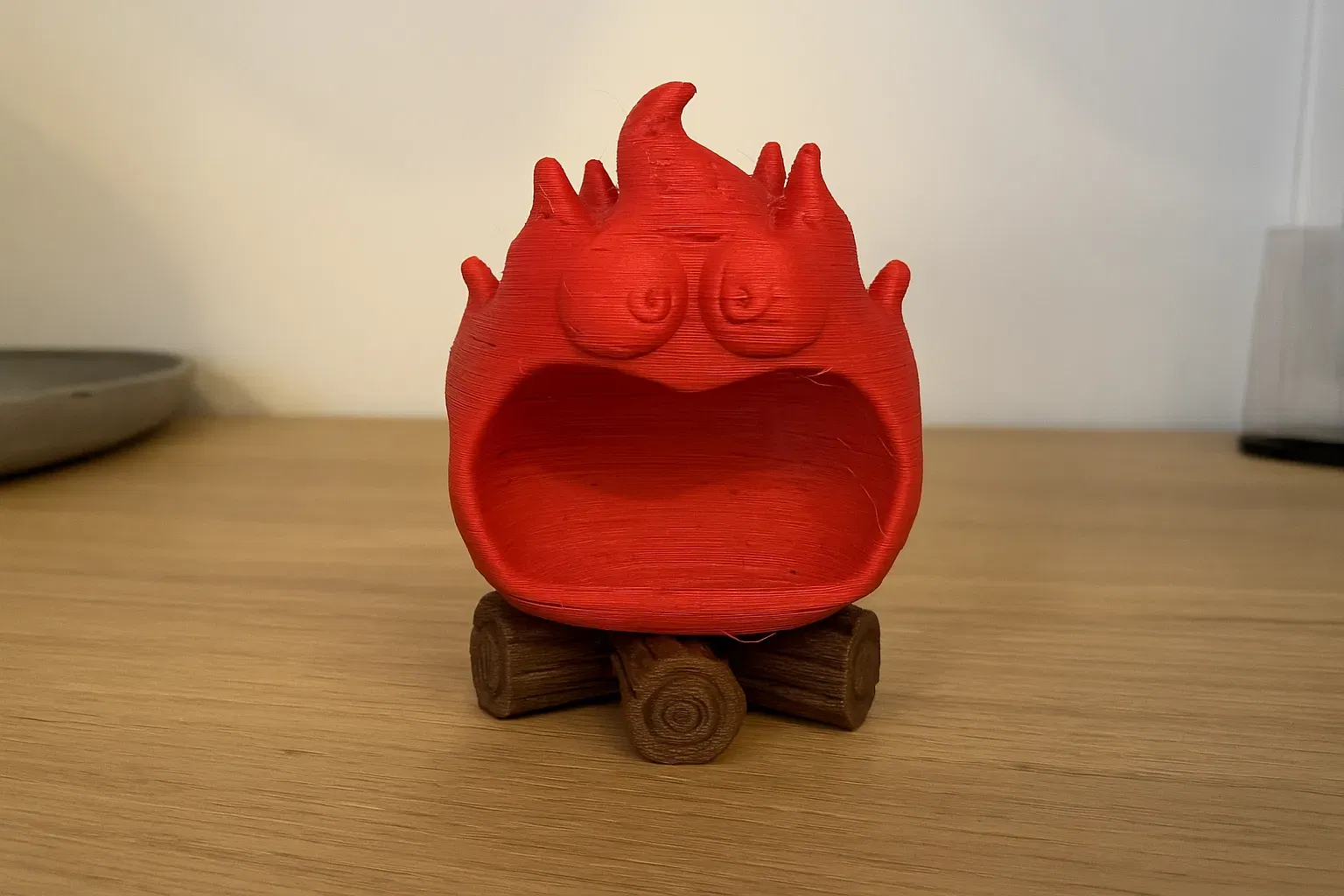 Ngọn lửa nhỏ nhắn, đáng yêu này trông như vừa nhảy ra từ một bếp lửa trại ấm cúng vậy đó. Với đôi mắt to biểu cảm và cái miệng rộng, nó tràn đầy cá tính – vừa dễ thương lại vừa hơi hoang dã. Mình in bằng máy Bambu Lab A1 Mini với AMS Lite >.<