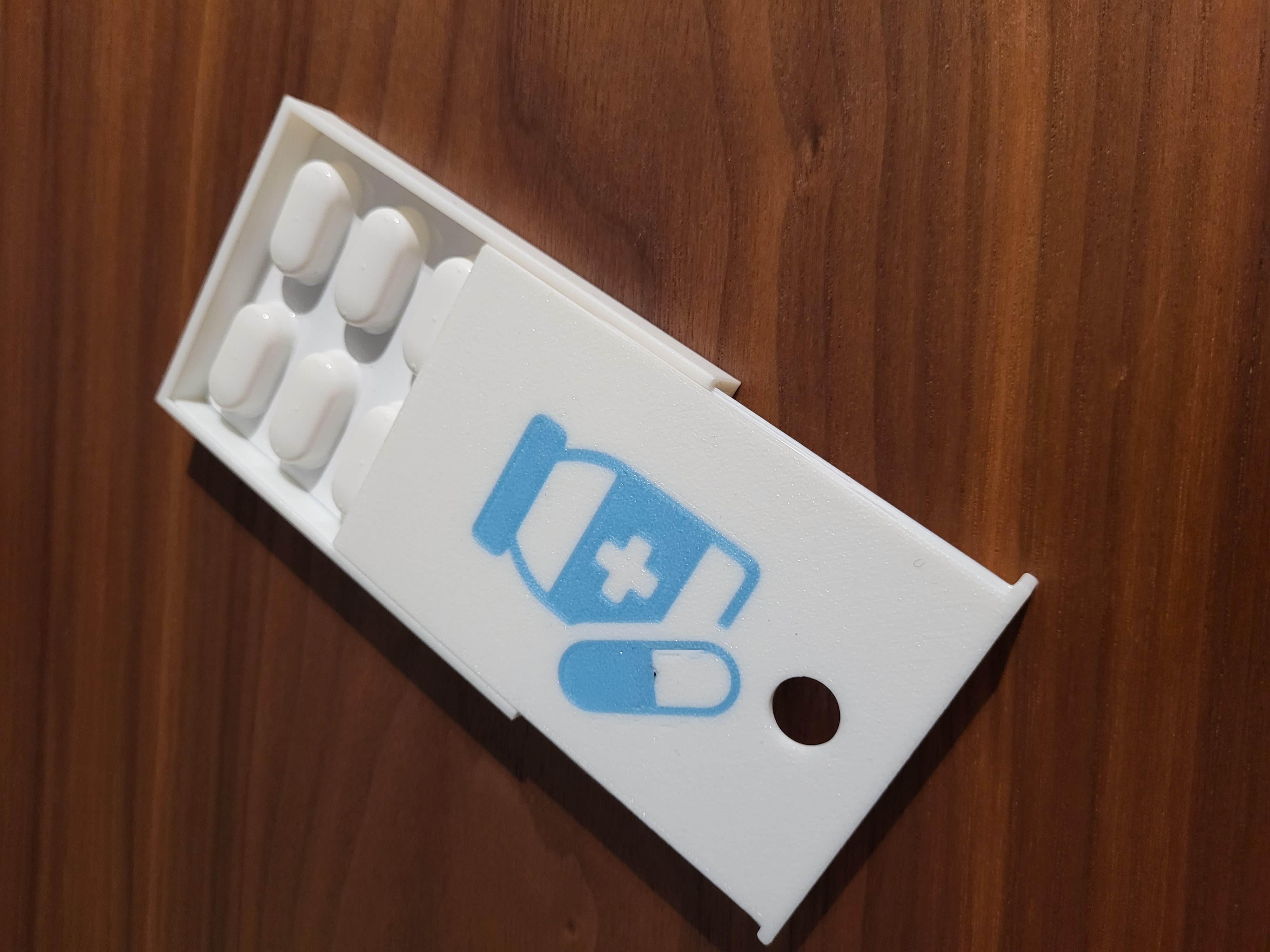 Hộp đựng thuốc. Dễ mở, không làm hư hại hộp giấy nguyên bản trong ba lô hoặc túi xách. Để điều chỉnh kích thước, bạn cứ việc scale (phóng to/thu nhỏ) trong phần mềm slicer theo ý muốn nha.