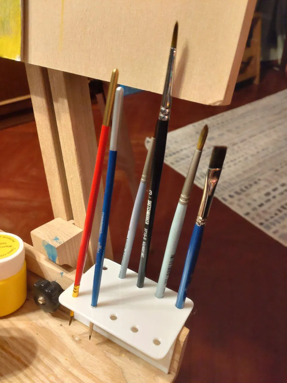Giá đỡ cọ cho chân đế vẽ tranh nghệ thuật Staffelei. 10 lỗ từ 4 đến 6 mm, thích hợp cho các cọ nhỏ. Phần giữ = 10+0.2 mm.