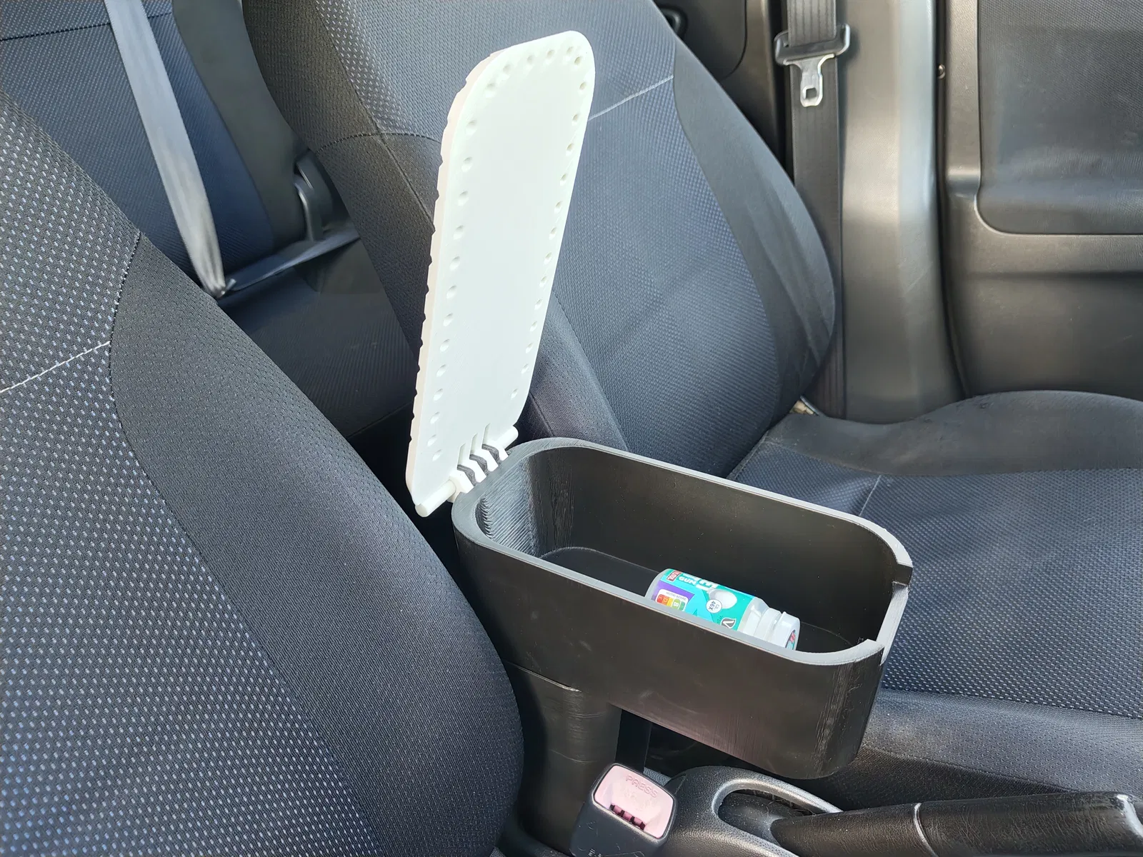Bệ tì tay cho xe Suzuki Ignis, gắn vào hộc đựng ly, có khoang chứa đồ và nắp đậy có thể lật lên. Đảm bảo đủ chỗ cho thắng tay và dây an toàn. Có mô hình thử nghiệm fitting và lưu ý khi in.
