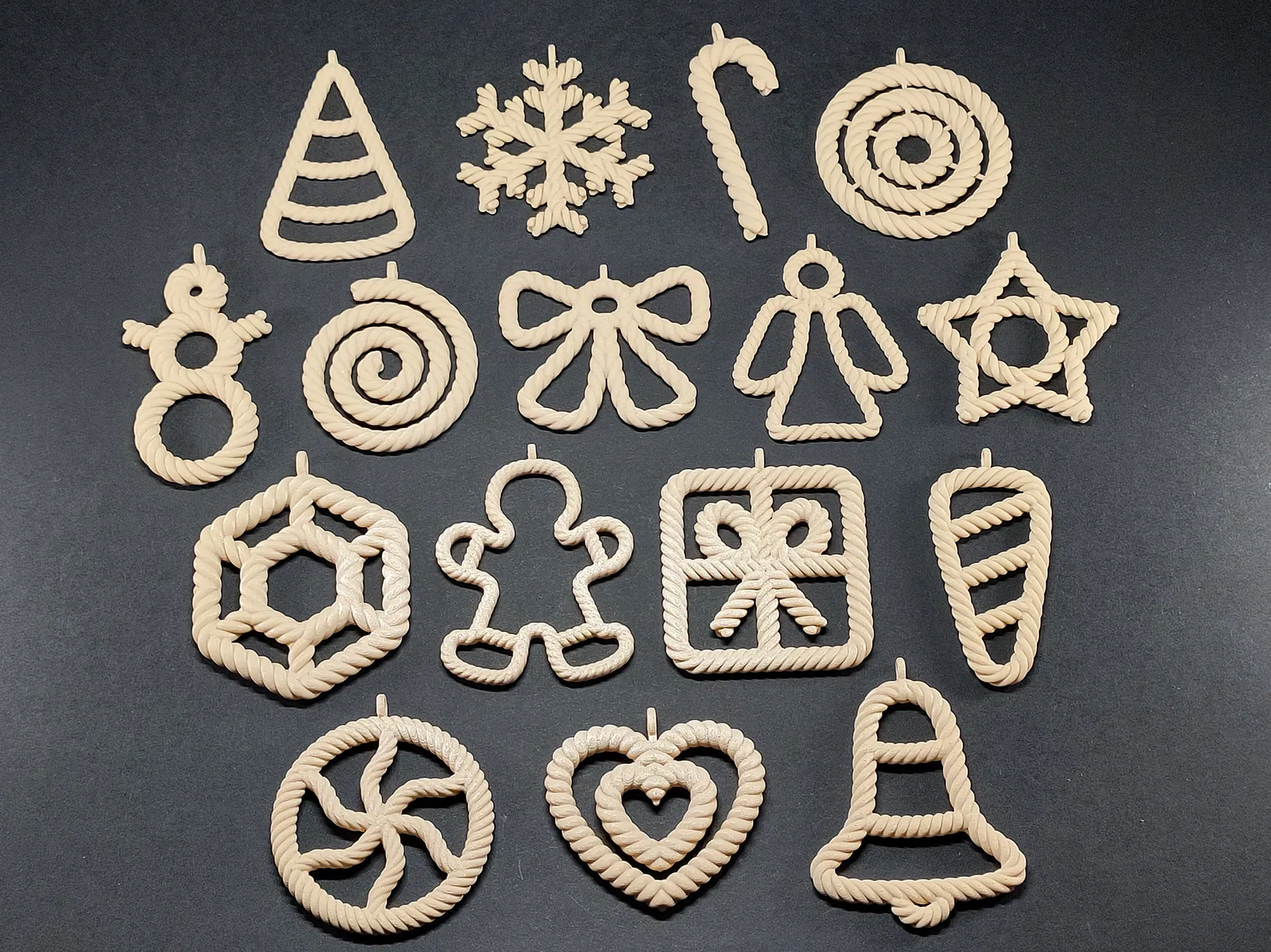 Tui mới học làm dây thừng nên tui chuẩn bị 3 bộ sưu tập đồ trang trí Giáng Sinh. Bộ sưu tập đầu tiên này có hình dạng dây thừng, với 2 kiểu in: cắt một miếng hoặc in nguyên cái rồi dán lại. Thích hợp để trang trí cây thông Noel.