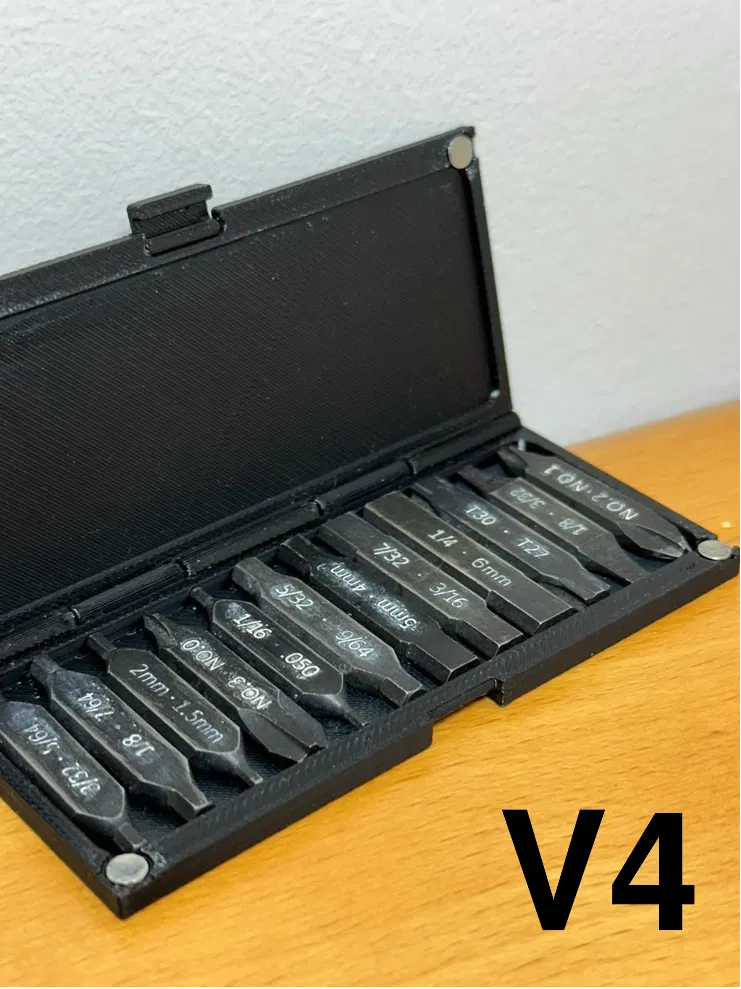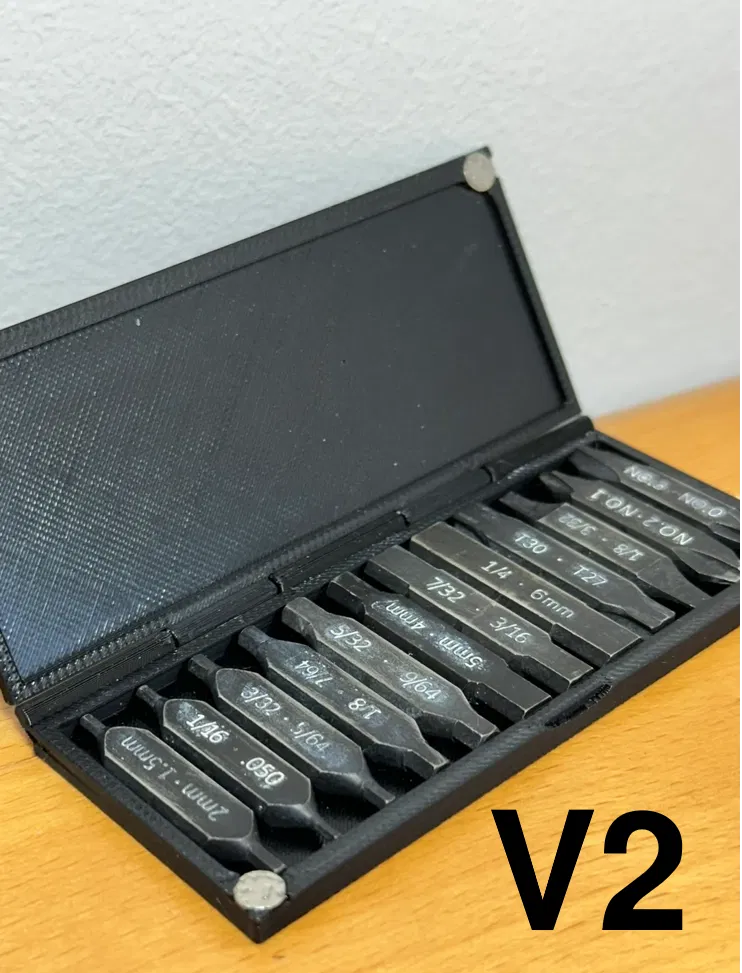 Giữ cho các đầu tua vít dẹp của bạn được ngăn nắp, bảo vệ và sẵn sàng sử dụng với hộp đựng 12 khe cắm nhỏ gọn này. Tải xuống này bao gồm tất cả bốn phiên bản của Hộp Đựng Tua Vít Dẹp, vì vậy bạn có thể chọn kiểu phù hợp nhất với nhu cầu của mình — nam châm, khóa cơ học, hoặc kết hợp cả hai.