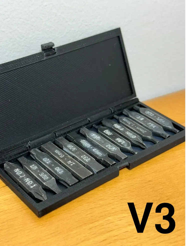Giữ các đầu tua vít dẹp của bạn ngăn nắp với Hộp Đựng Tua Vít Dẹp 12 khe này từ Pine Makers. Tải xuống bao gồm 4 phiên bản: khóa nam châm, khóa cơ học hoặc kết hợp. Lý tưởng cho EDC và lưu trữ xưởng.