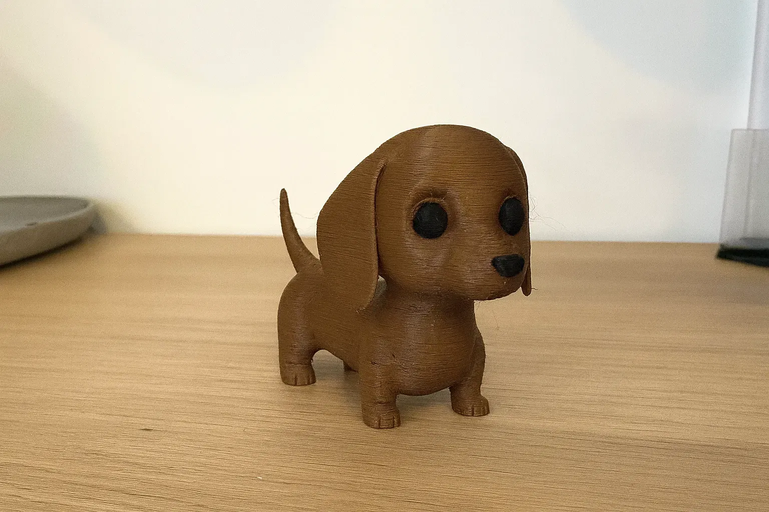 Chú chó dachshund con dễ thương với đôi tai to rủ xuống, cái đuôi vẫy vẫy và đôi mắt tròn xoe đáng yêu nhất. Hoàn hảo để làm bạn nhỏ trên bàn làm việc, làm quà tặng, hoặc để bổ sung vào bộ sưu tập động vật kawaii đang lớn dần của bạn. Luôn sẵn sàng làm bừng sáng ngày của bạn bằng tình yêu của chú cún! 🐕💕 Kích thước: 24x50x30mm In trên máy Bambu Lab A1 Mini với AMS ~.~