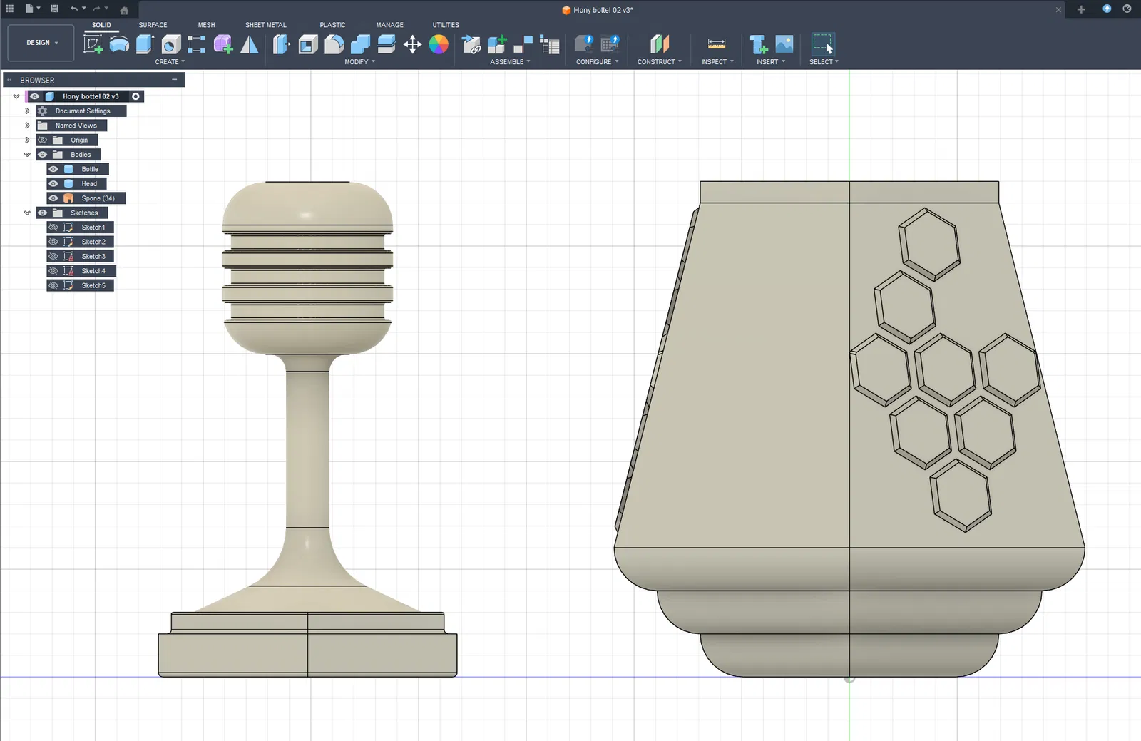 Mô hình này được thiết kế để in thành hai phần chính: thân lọ và cụm nắp (cán + phần múc).