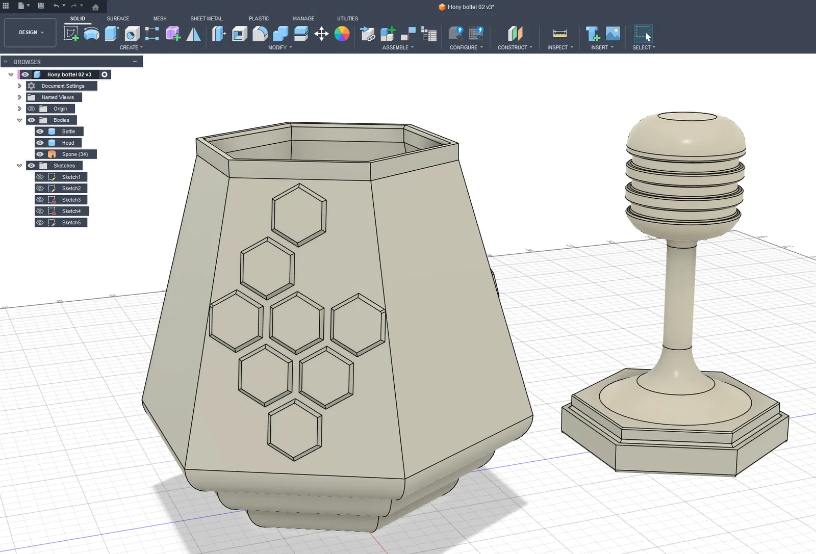 Vui lòng lưu ý rằng mặc dù thiết kế này có mục đích sử dụng cho thực phẩm, các bản in FDM tiêu chuẩn có thể chứa vi khuẩn trong các đường vân lớp. Bạn nên phủ bên trong lọ và cái múc bằng nhựa epoxy hoặc chất trám an toàn cho thực phẩm trước khi sử dụng với các chất lỏng như mật ong. Hoặc, bạn có thể sử dụng lọ này để đựng kẹo bọc đường hoặc thực phẩm khô.