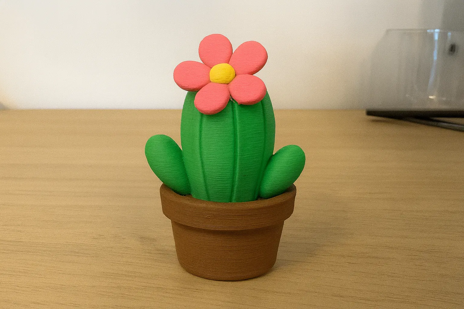 Mô hình xương rồng vui vẻ với bông hoa hồng rực rỡ không bao giờ héo! Hoàn hảo để tô điểm cho bàn làm việc, kệ sách hoặc bộ sưu tập cây của bạn — mà không cần ánh sáng mặt trời hay tưới nước. Dễ thương, đầy màu sắc và đảm bảo sẽ mang lại nụ cười suốt cả năm! In trên máy Bambu Lab A1 Mini với AMS >,<