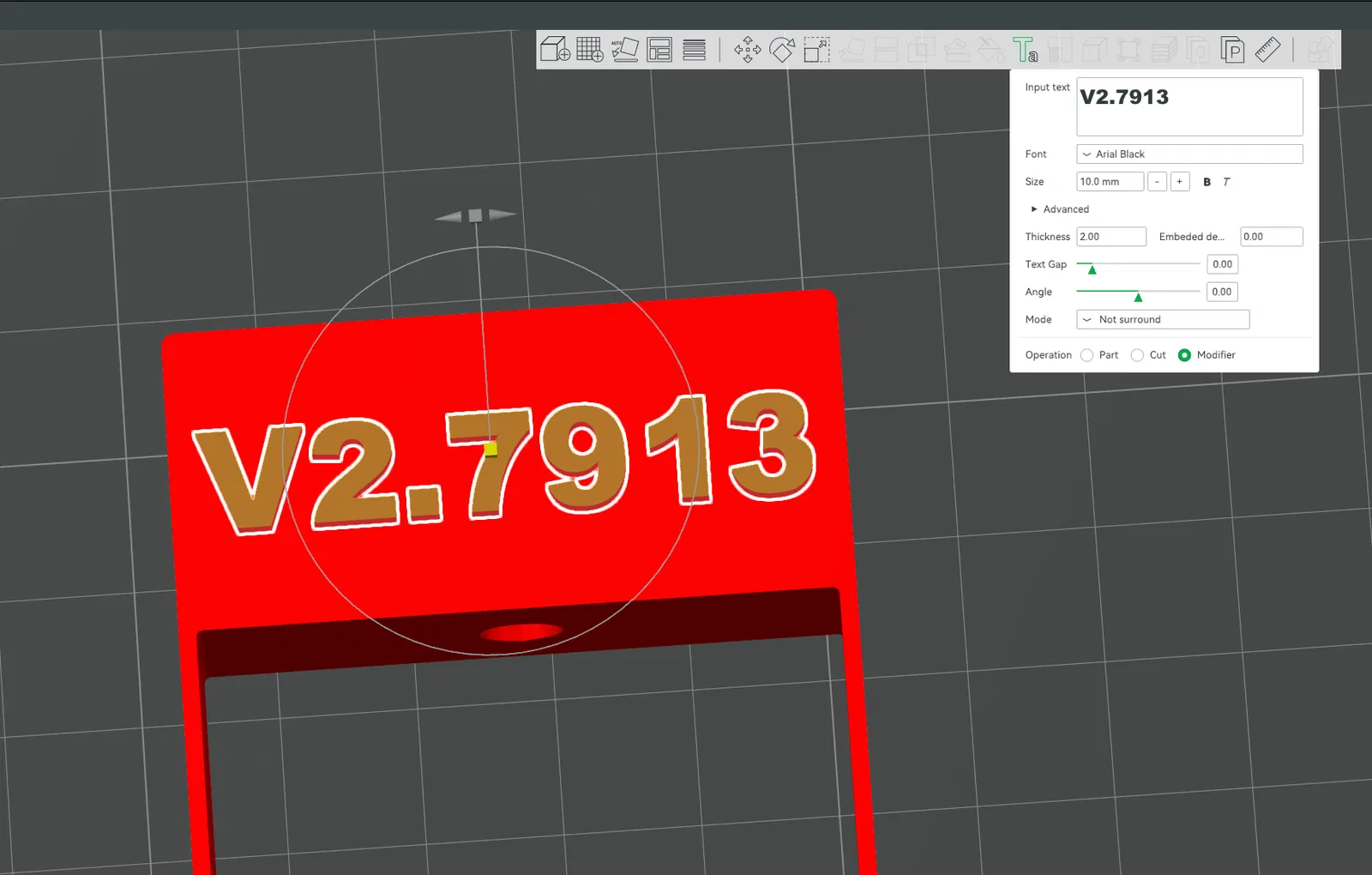!!!Cảnh báo!!! Nhớ để ý chiều cao của mô hình có chỗ khắc chữ. Nó cao 52.25mm (tính từ đỉnh của thanh nhôm định hình), nên hãy kiểm tra chiều cao Z tối đa của bạn và dịch chuyển trục Z lên một chút khi lắp cái này lên bộ phận di chuyển (flying gantry) để đảm bảo nó không bị đè bẹp hoặc gây ra vấn đề. Bạn có thể sẽ cần chỉnh giảm Max Z (đừng quên cập nhật trong slicer) với cái này.