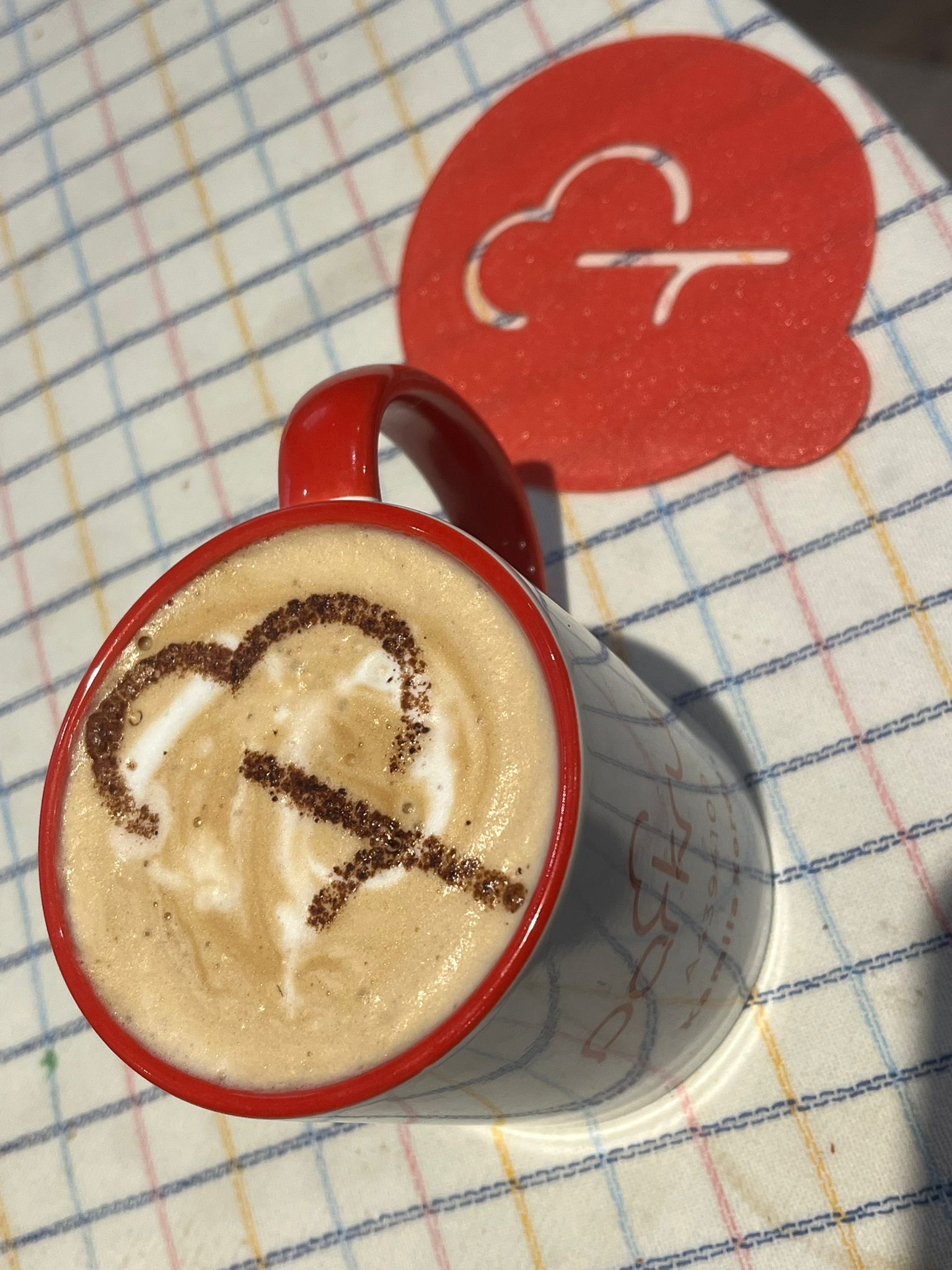 Một khuôn stencil cà phê có logo parkrun