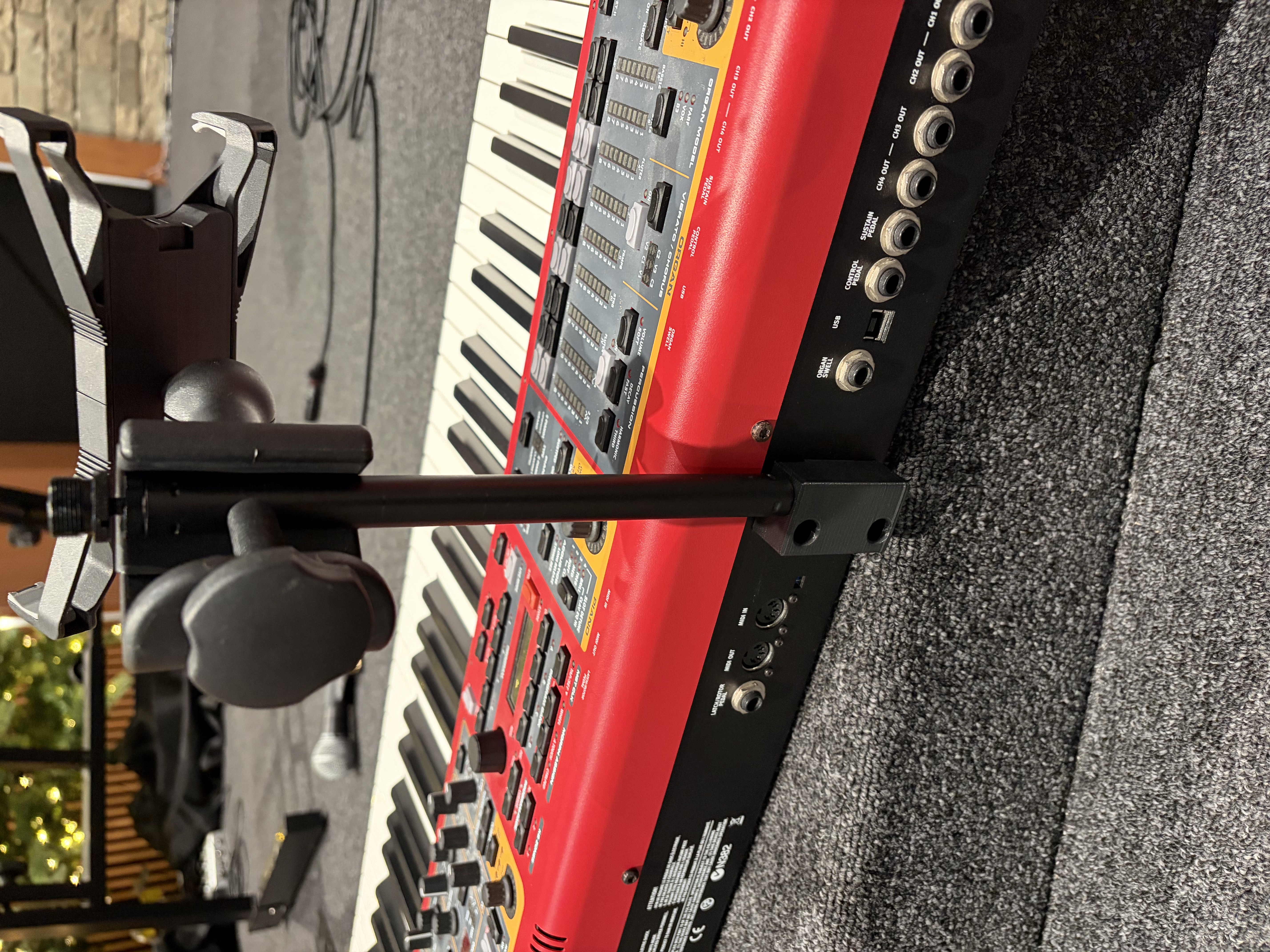 Cái này thay thế cho chỗ gắn bản nhạc phía sau cây đàn Nord của bạn, bằng một bộ nối đa năng có 4 lỗ ren để gắn ốc. Tụi mình xài với mấy cái thanh ren này để gắn kẹp iPad và/hoặc tay mic với bộ chuyển đổi ren đực 3/8 và bộ chuyển đổi ren 3/8 sang ren mic.