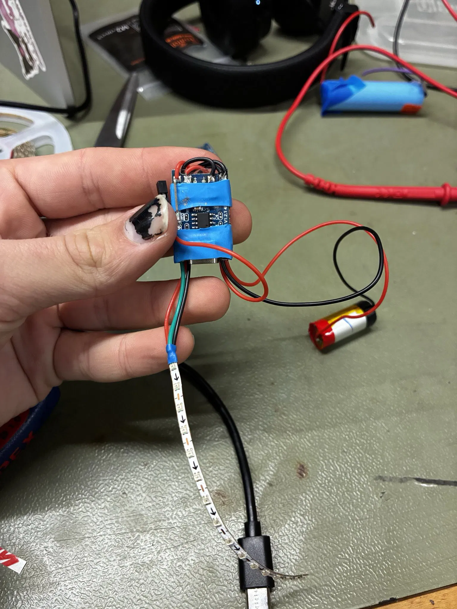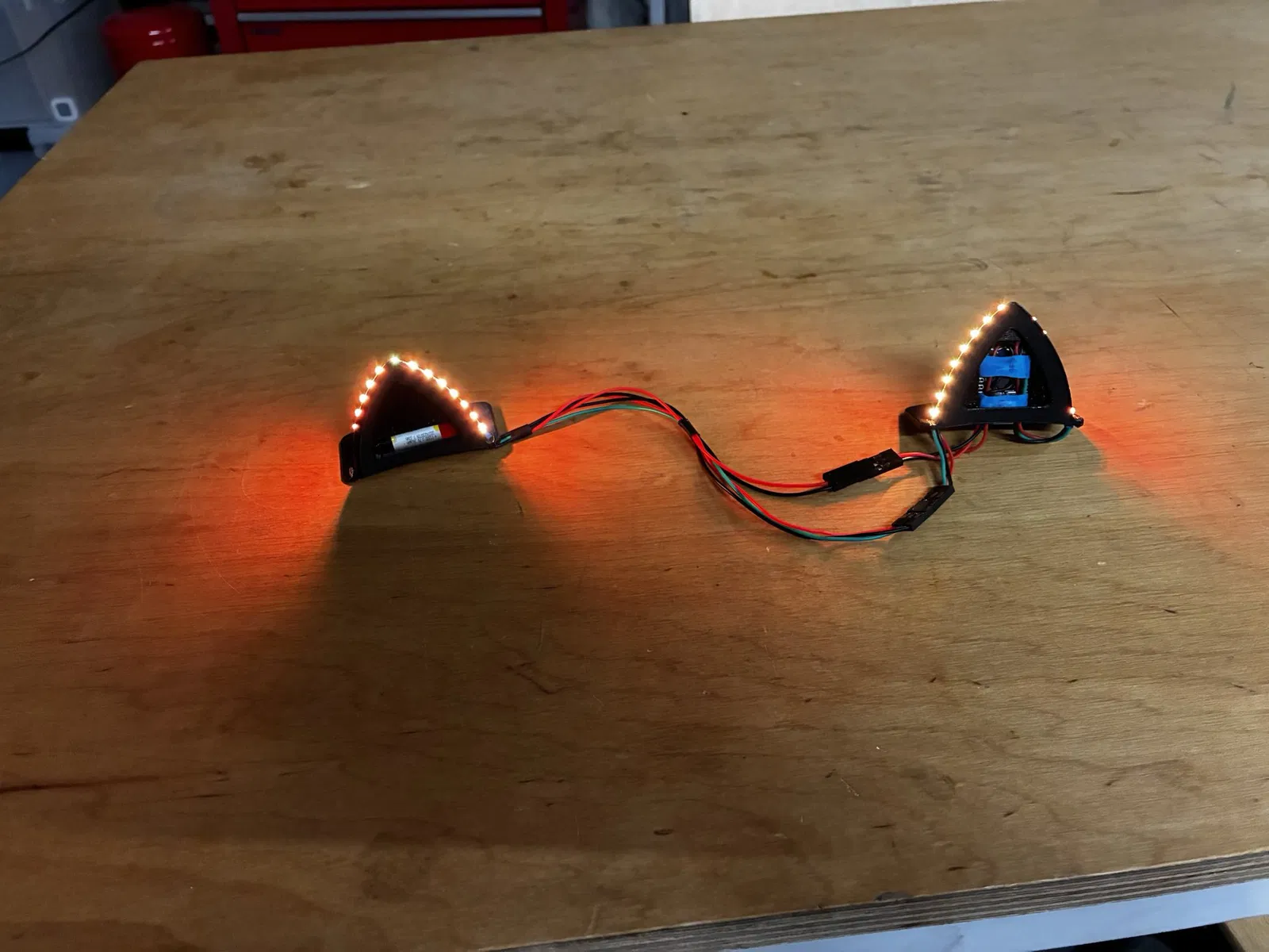Đây là dự án của tui để làm tai mèo mà bạn có thể dễ dàng gắn lên bất kỳ loại tai nghe nào. Phiên bản hiện tại dùng pin vape 360mah, xài được khoảng 2-3 tiếng. Tui dự định làm phiên bản v2 với pin 500mah và quản lý nguồn tốt hơn trong tương lai.