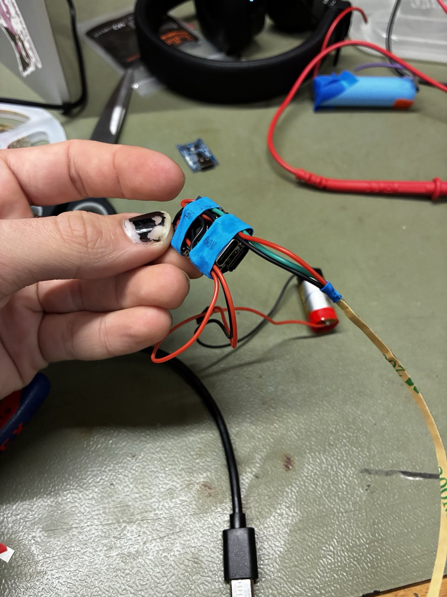 Ở đây bạn dán ESP và BMS lại với nhau bằng băng keo hai mặt và hàn dây nhỏ từ ESP sang BMS qua mặt đối diện cổng USB