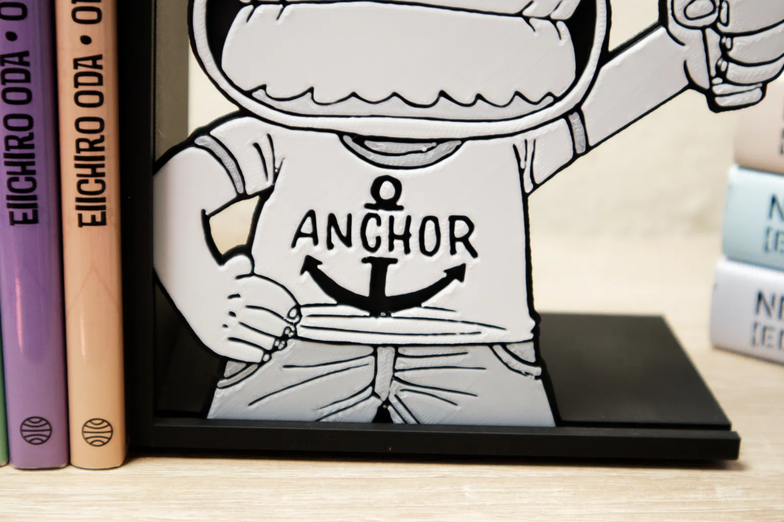 Mẫu kẹp sách Kid Luffy theo phong cách One Piece độc đáo, kèm đế phải/trái. Hướng dẫn in chi tiết với vật liệu PLA tái chế, cài đặt và đổi màu. Lưu ý: Không được bán.