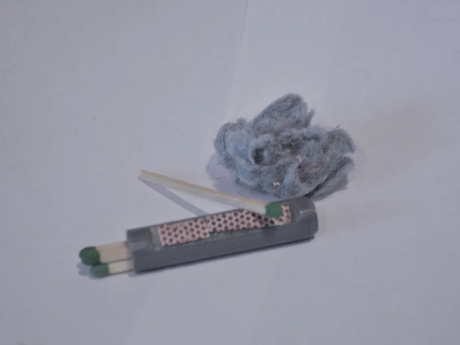 Cắt phần bề mặt ma sát của hộp quẹt diêm cho vừa vặn và dán vào vị trí đã thiết kế, thêm diêm và bùi nhùi (khuyến khích dùng xơ vải hoặc bông gòn), vặn đóng lại là bạn đã sẵn sàng.