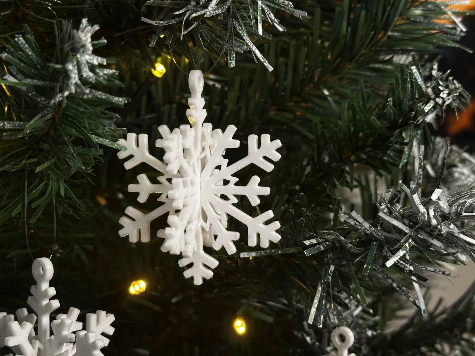 Эффектный объемный дизайн: Снежинка получается полноценно трехмерной, отлично смотрится на елке, в качестве подвесного украшения у окна.