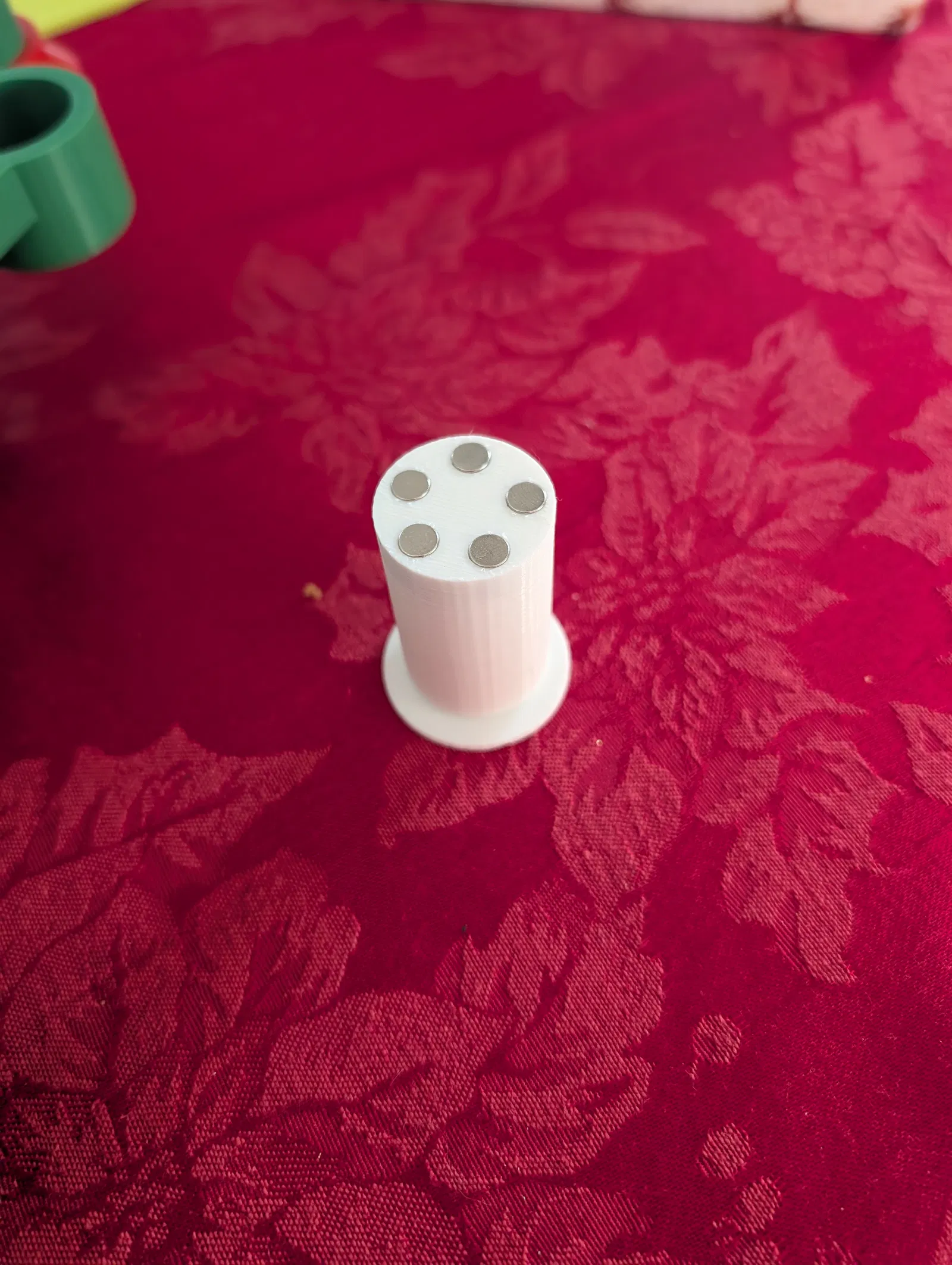 Tui tạo cái đế này để gắn nam châm treo trước cửa nhà nè. Nó xài 10 cục nam châm 3mmx6mm mà tui ép vô bằng kìm chỉnh được.