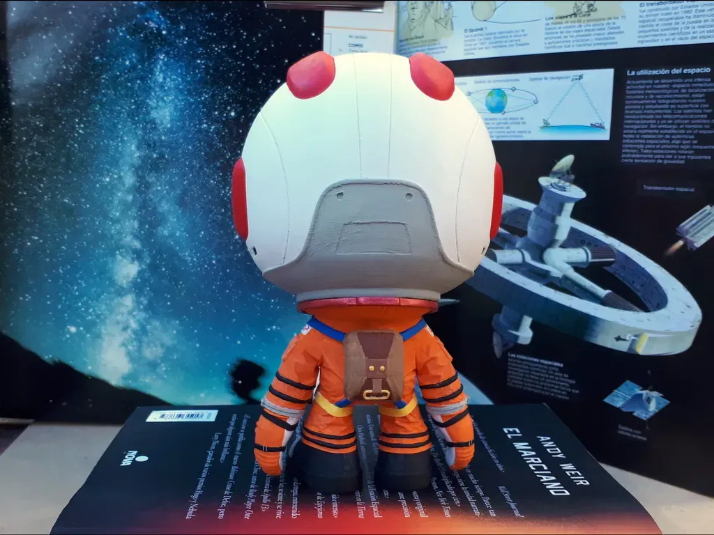Jebediah Kerman từ chương trình không gian Kerbal trong bộ đồ IVA của mình. Bộ đồ là sự pha trộn từ các bộ đồ khác nhau mà