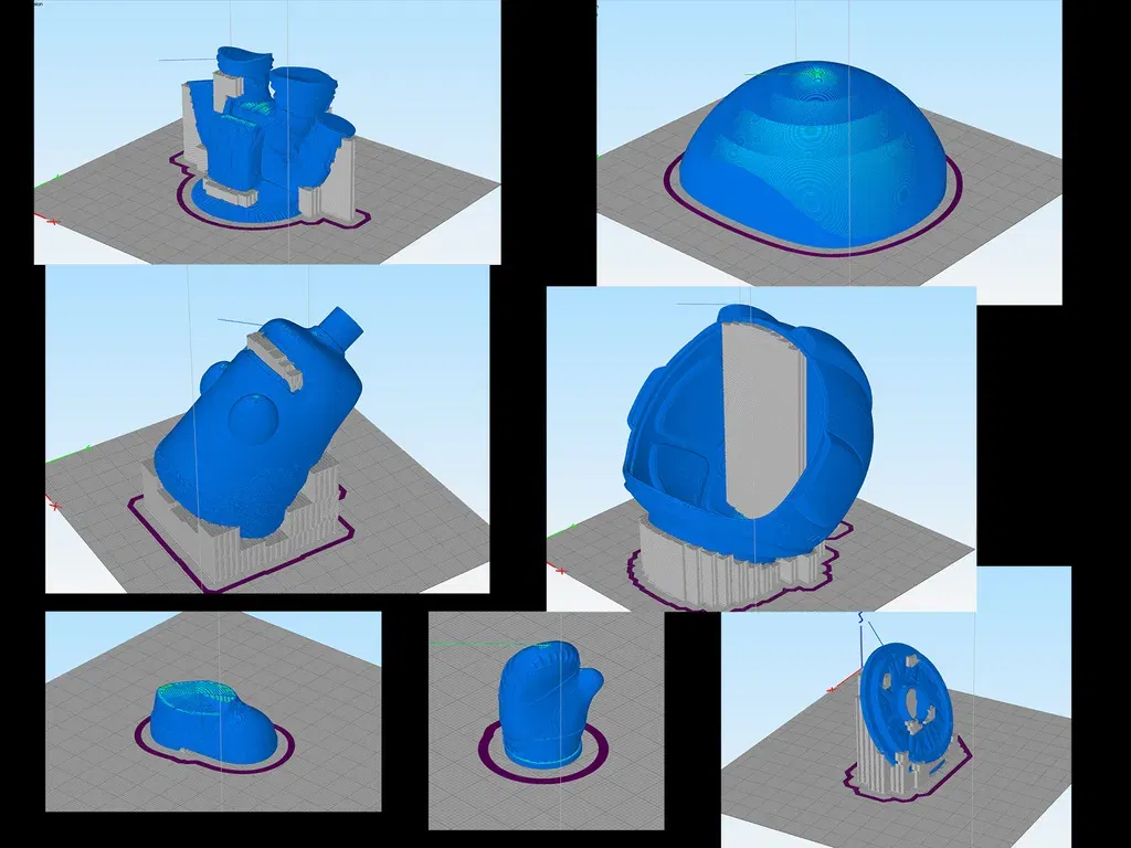 Kính che mặt được làm bằng cách tạo hình chân không. Có một file stl cho chính kính che mặt, và một file cho khuôn tạo hình chân không.