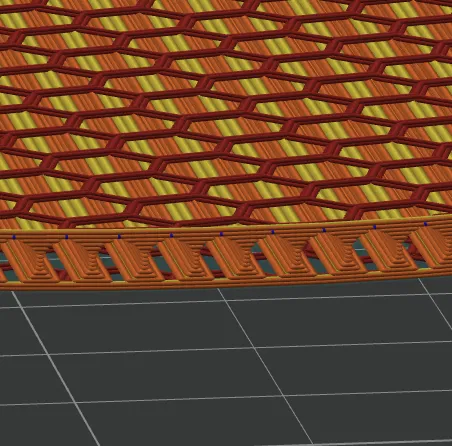 Thấy cốt vợt bóng bàn làm bằng TPU cứng quá, tui khoét thêm lỗ để làm nó mềm lại. Sử dụng 15% infill, kiểu honeycomb nha anh em.