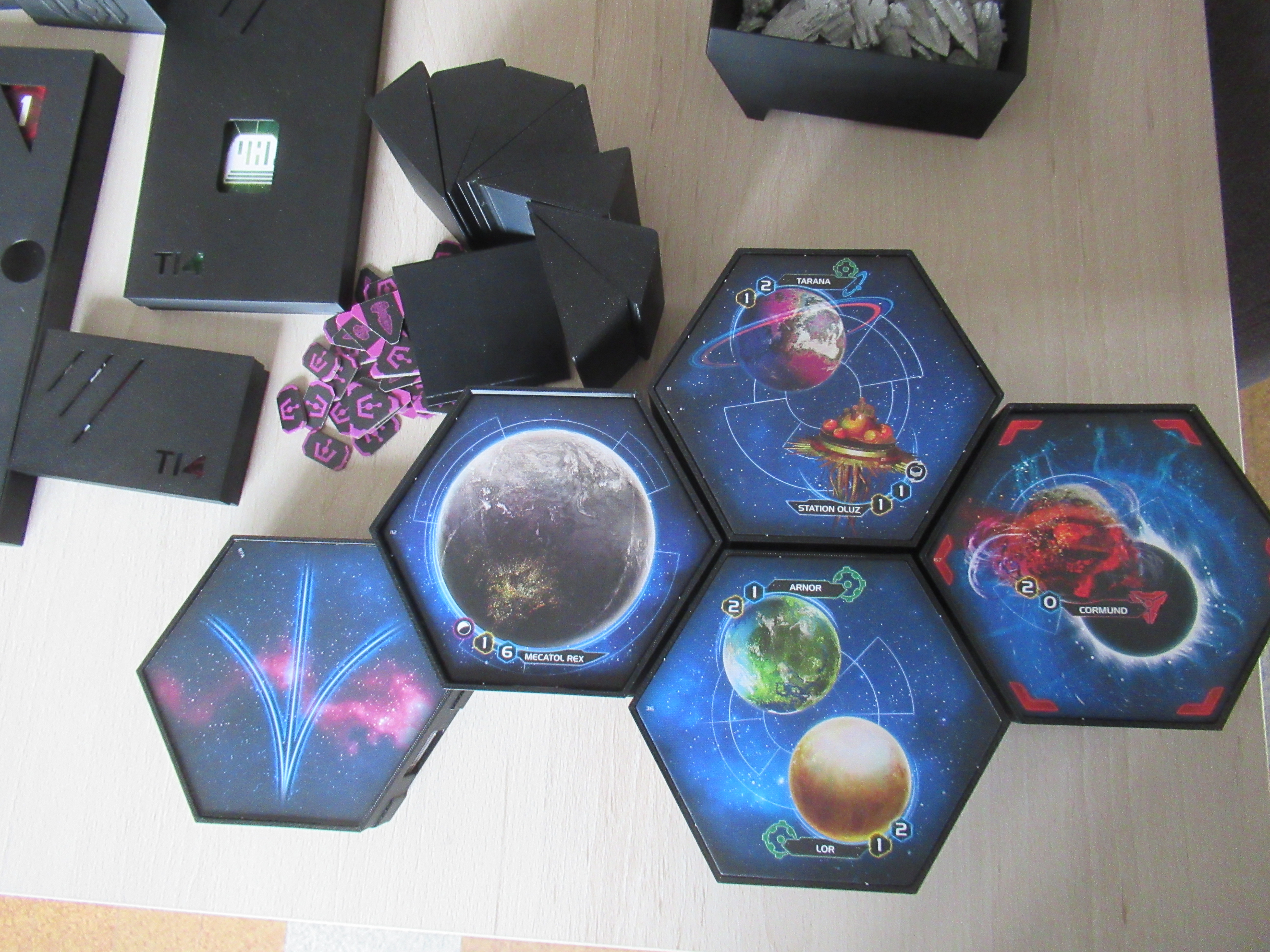 - 4 hộp hexagon lớn (1 cho màu đỏ, 2 cho màu xanh, 1 cho ô faction và Mecatol)