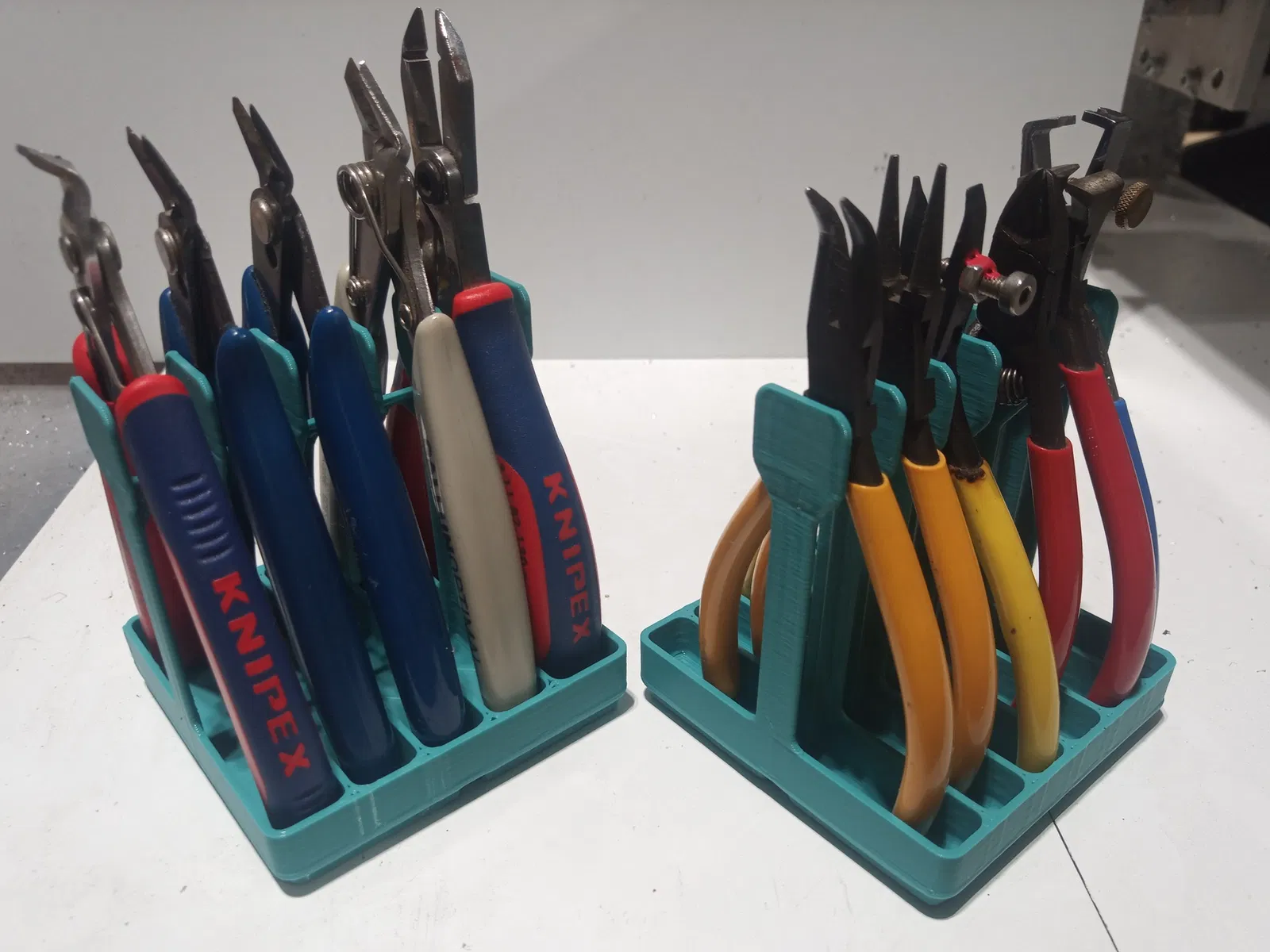 Giá đỡ kìm đa năng, tiết kiệm không gian cho các loại kìm nhỏ dùng trong điện tử. Có nhiều kích thước khe để phù hợp với các loại kìm khác nhau, file Fusion gốc đính kèm để tùy chỉnh.