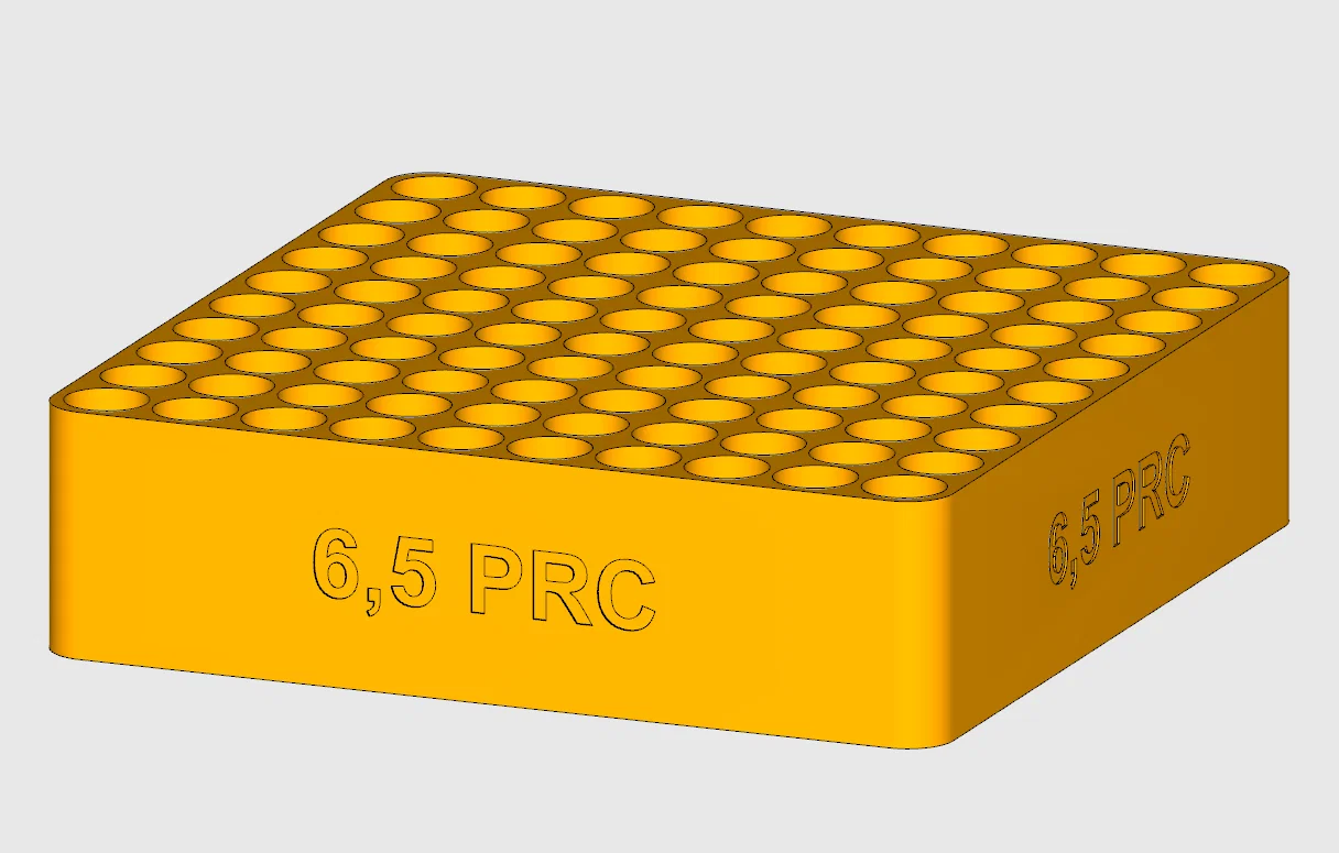 Khay Đựng Đạn 6.5 PRC, dùng để chứa 100 viên đạn. Phiên bản 6.5 PRC được thiết kế mạnh mẽ hơn và bắn đạn thẳng hơn 6.5mm Creedmoor.