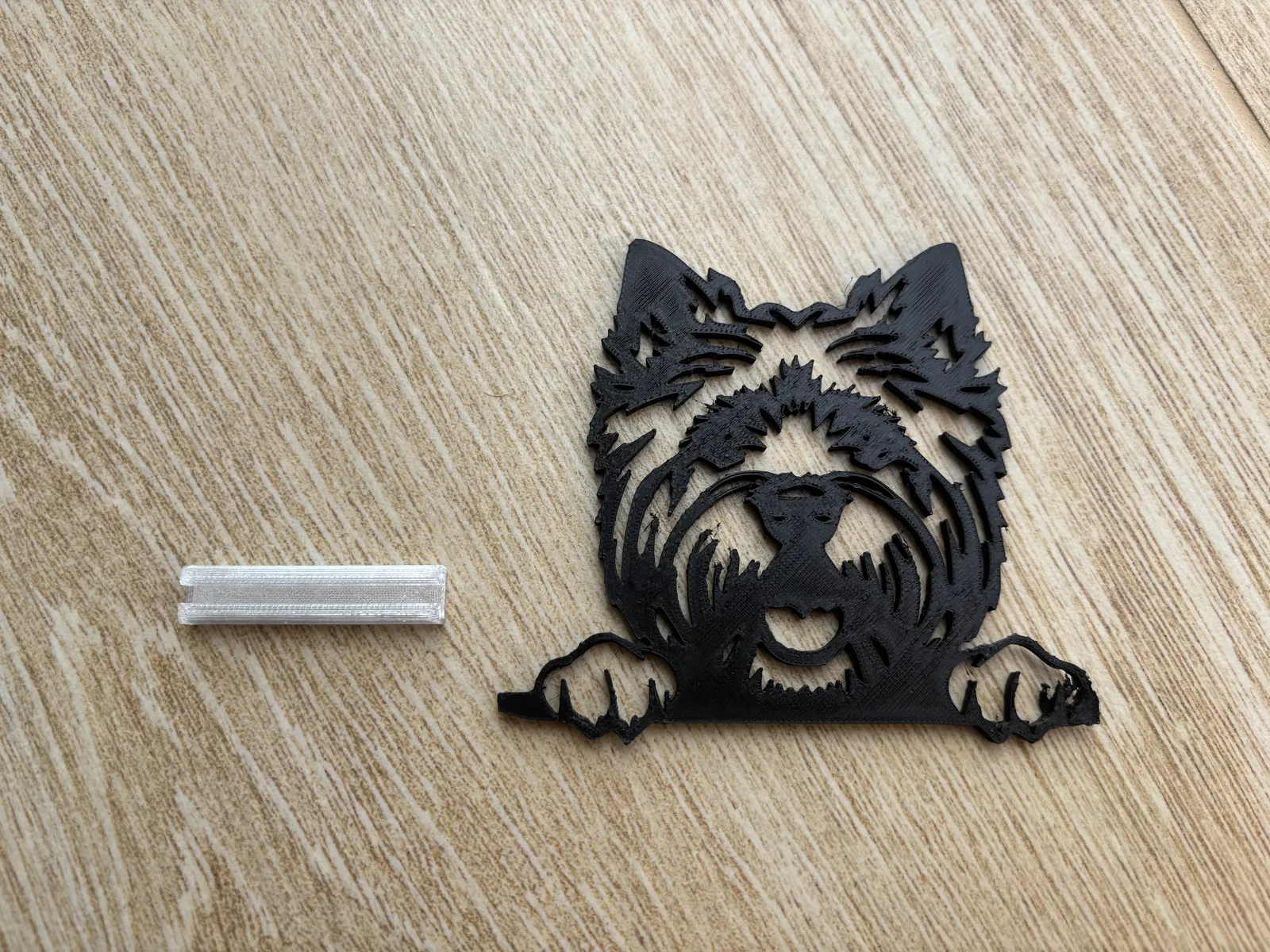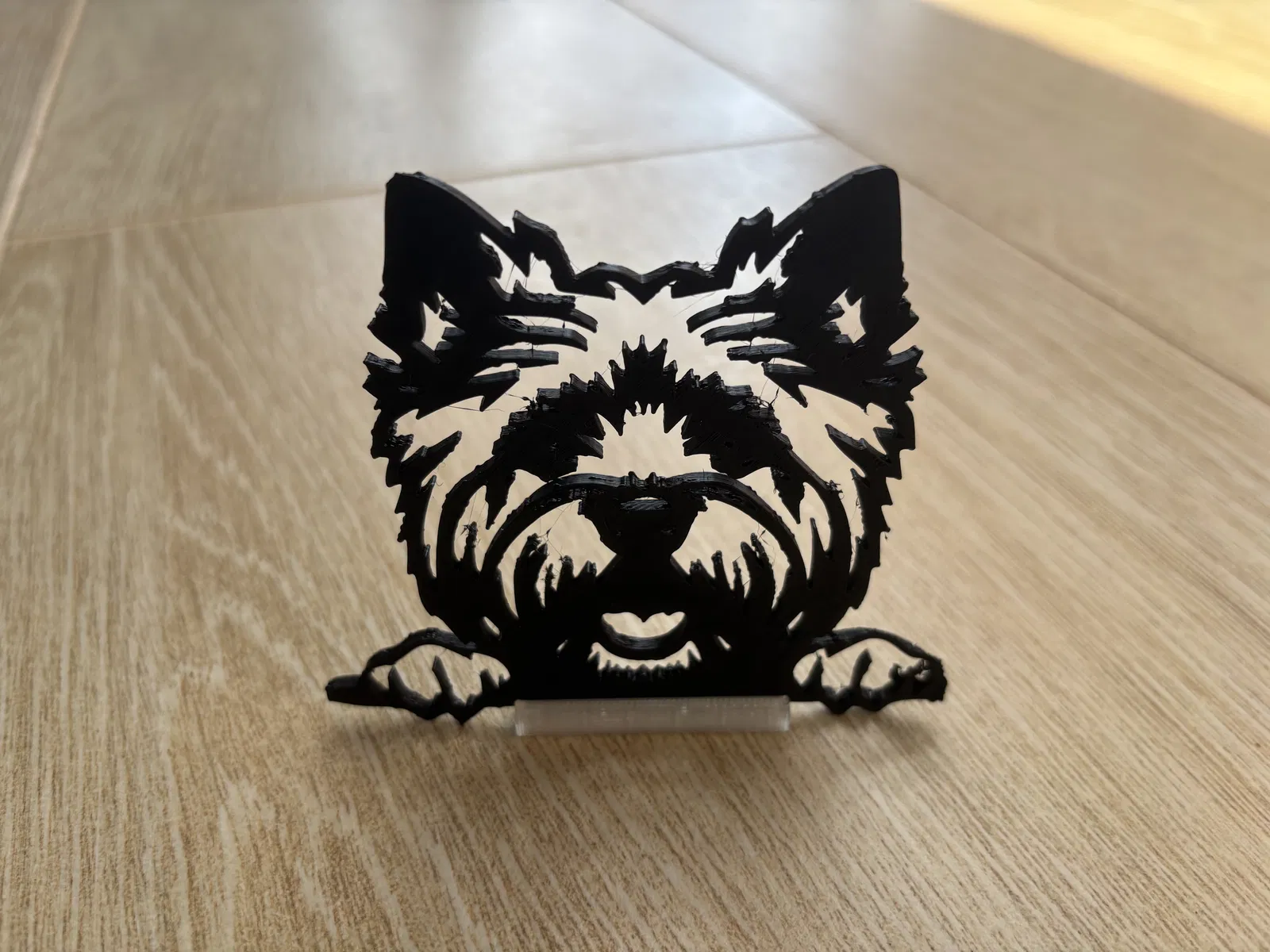 Tôn vinh nét đáng yêu của giống chó này với món đồ trang trí tường 2D hình chú Westie, với phần профайл của chú Chó West Highland Terrier cùng đôi chân trước được đặt một cách tinh nghịch. Thiết kế này nắm bắt được nét duyên dáng đáng yêu của chú Westie, và nó đi kèm với một đế đỡ tiện lợi, cho phép bạn treo lên tường hoặc đặt trên kệ hoặc bàn. Món đồ này là sự lựa chọn hoàn hảo cho những người yêu chó, mang đến một điểm nhấn vui tươi và ấm áp cho bất kỳ không gian nào.